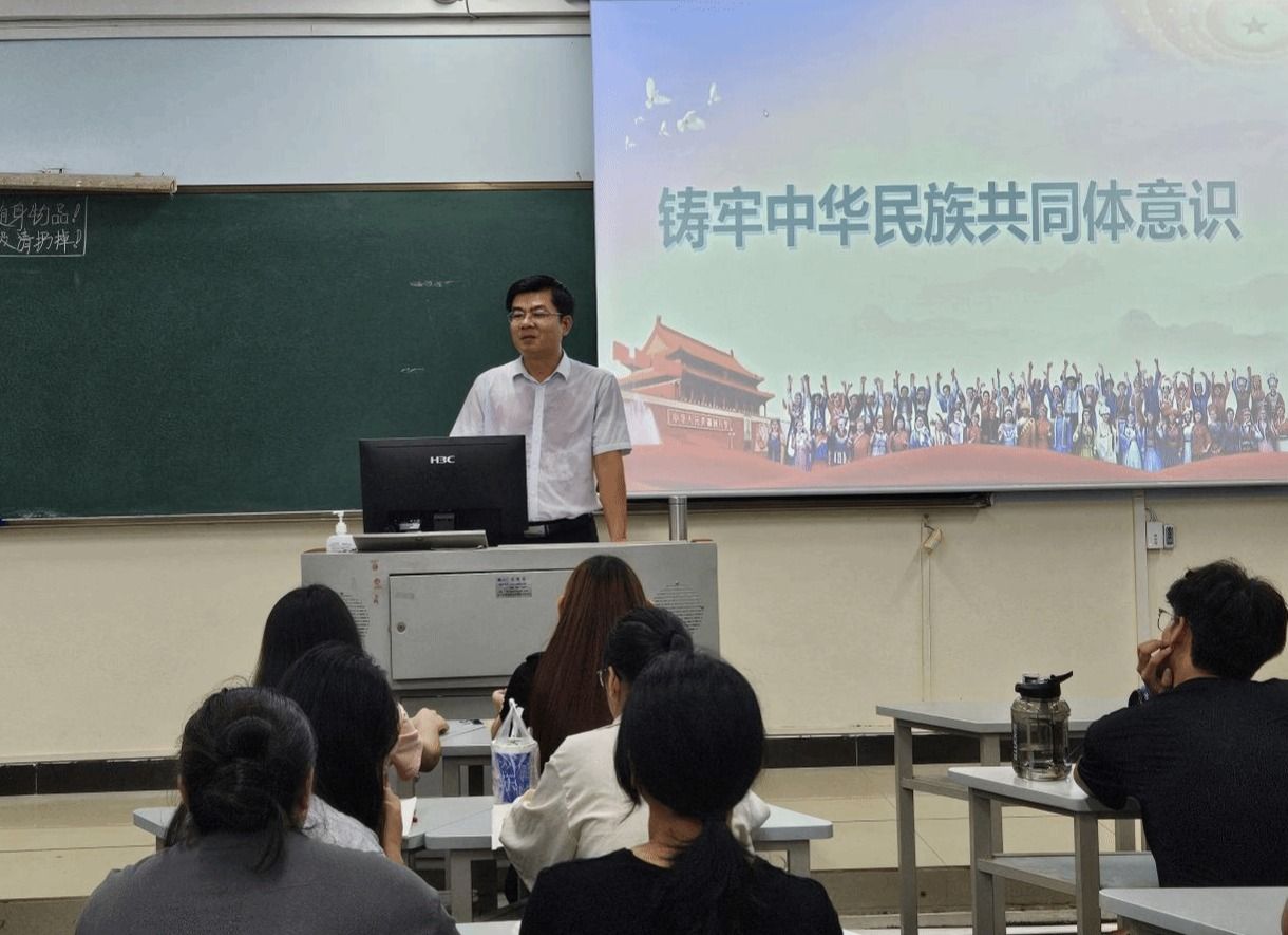 6月4日,学校党委委员方天海来到2023商务英语专业1、2班的课堂,为同学们讲授“铸牢中华民族共同体意识”专题思政课。他从铸牢中华民族共同体意识的战略意义、丰富内涵、实践路径三个方面进行解读,强调民族团结的历史必然性与极端重要性,铸牢中华民族共同体意识是国家统一之基、民族团结之本、精神力量之魂,引导同学们牢固树立正确的国家观、深刻认识国家统一是各民族最高利益,共同铸牢维护国家统一的思想根基。