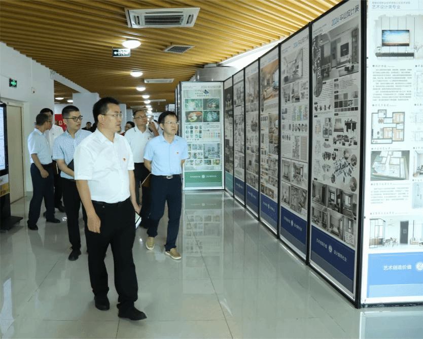 2024年6月14日,人文艺术学院2024届艺术设计类专业毕业生毕业设计优秀作品展开幕,来自文化创意与策划、艺术设计、服装与服饰设计、环境艺术设计四个专业的毕业生的45组优秀作品,在图书馆精彩呈现。学校党委副书记、院长崔昌华来到展览现场参观指导。校党委委员、副院长陈修焕,校党委委员、纪委书记符史杭,校党委委员、副院长刘文斌,校党委委员方天海共同观展。