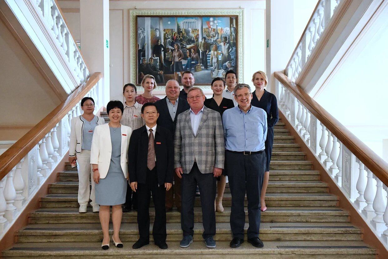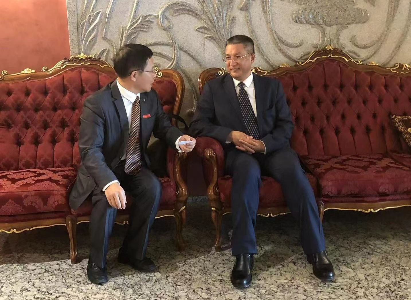当天下午,海经贸代表团专程拜访了孙来麟。陈修焕详细介绍了海南自由贸易港建设情况和海经贸国际化办学所取得的成果,希望在总领事馆的支持下,共同推动中俄教育文化交流。孙来麟对海经贸在中俄合作办学中作出的贡献给予肯定,希望两校继续深化交流和合作,为推动两国文明交流互鉴作出积极贡献。