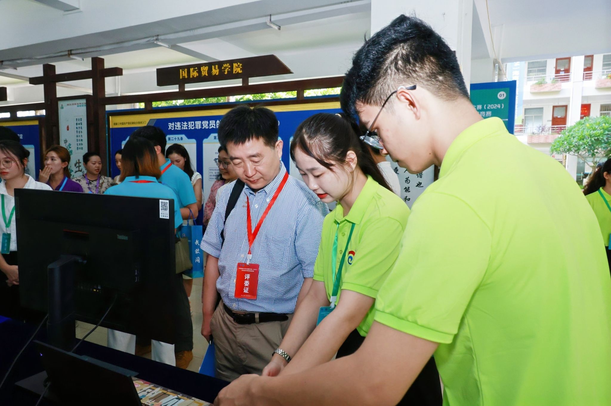 海经贸参赛选手们的项目作品创意十足、别出心裁,让人眼前一亮。有关注可持续生态领域的创新技术,有新媒体让思政课焕发活力的巧思,有关注当下休闲旅游产业的创业项目,也有农业、养生、智能化方面的灵感碰撞……充分展现了海经贸学子的优秀才智和创新创造热情。赛场上,选手们配合默契、思路清晰、自信大方,用充实的内容和精彩的汇报将项目内容完美地呈现。