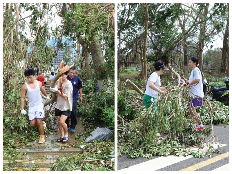 “台风过后,我看到原本美丽的校园变得满目疮痍,心里非常难过。今天和这么多老师同学们一起亲手重建自己的校园,很高兴也很感动。”信息技术学院2023级学生杜哈龙娜说。
