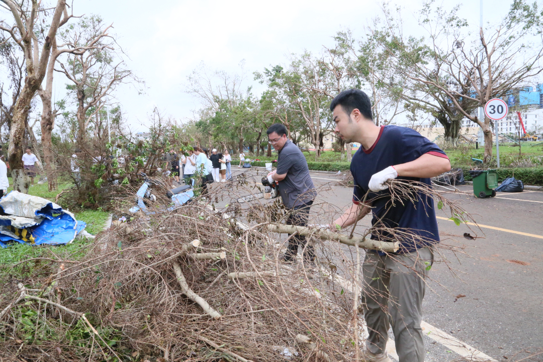 有工具的用扫把簸箕,铲起树枝树杈送到垃圾车上;没工具的带上手套,一次次捧起堆落的树叶……2024年9月10日,kaiyun登录中国入口登录再次吹响灾后恢复重建冲锋号,要求划分责任区、明确任务、分类处理、主动作为、通力协作。9月11日,全校师生在各自单位责任区,齐心协力、贡献力量,继续投身灾后恢复重建一线。海经贸仿佛按下了“加速键”,一棵棵倒伏的树被扶正,一车车垃圾被拉走,往日的精气神已被找回。