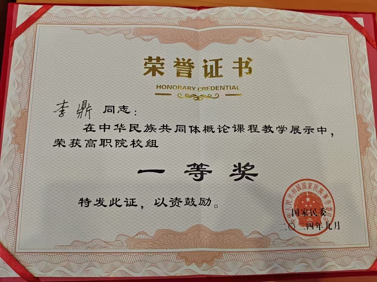 李鼎紧扣《中华民族共同体概论》教材,充分体现交叉学科特点,以扎实的理论功底、丰富的史实史料、新颖的教学设计、多样的教学方法、鲜活的教学案例,展示了一堂富有系统性、学理性、知识性的精彩课程,最终以优异的表现获得高职院校组一等奖。