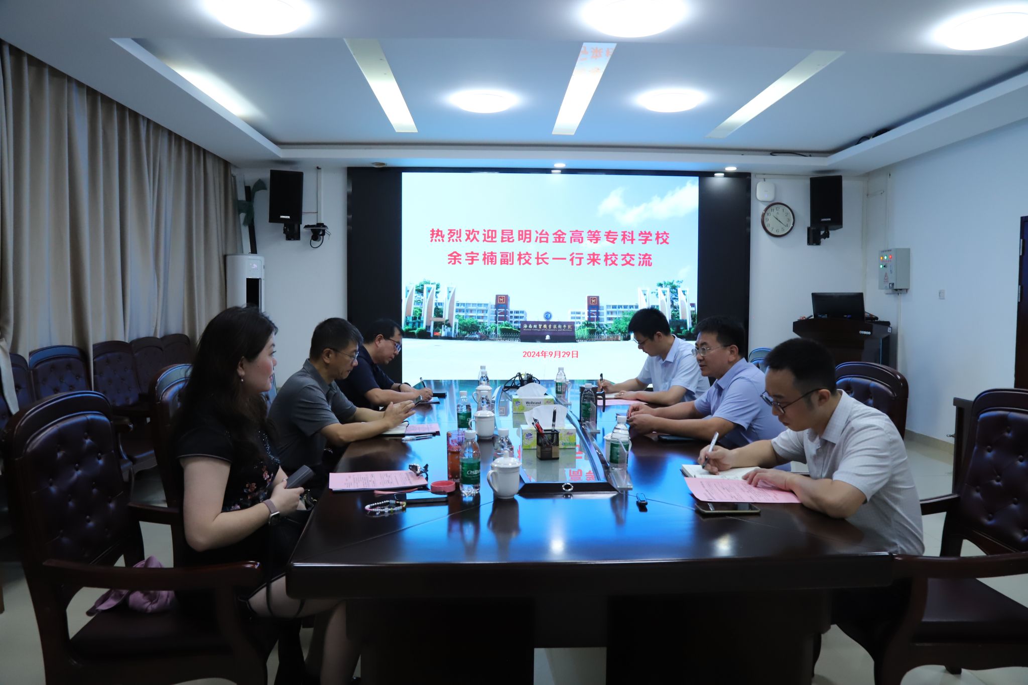2024年9月29日,昆明冶金高等专科学校副校长余宇楠一行三人来到kaiyun登录中国入口登录,就筹备2024年西部边疆地区高职院校高质量发展联盟年会事宜进行商谈。学校党委副书记、校长崔昌华出席座谈会。