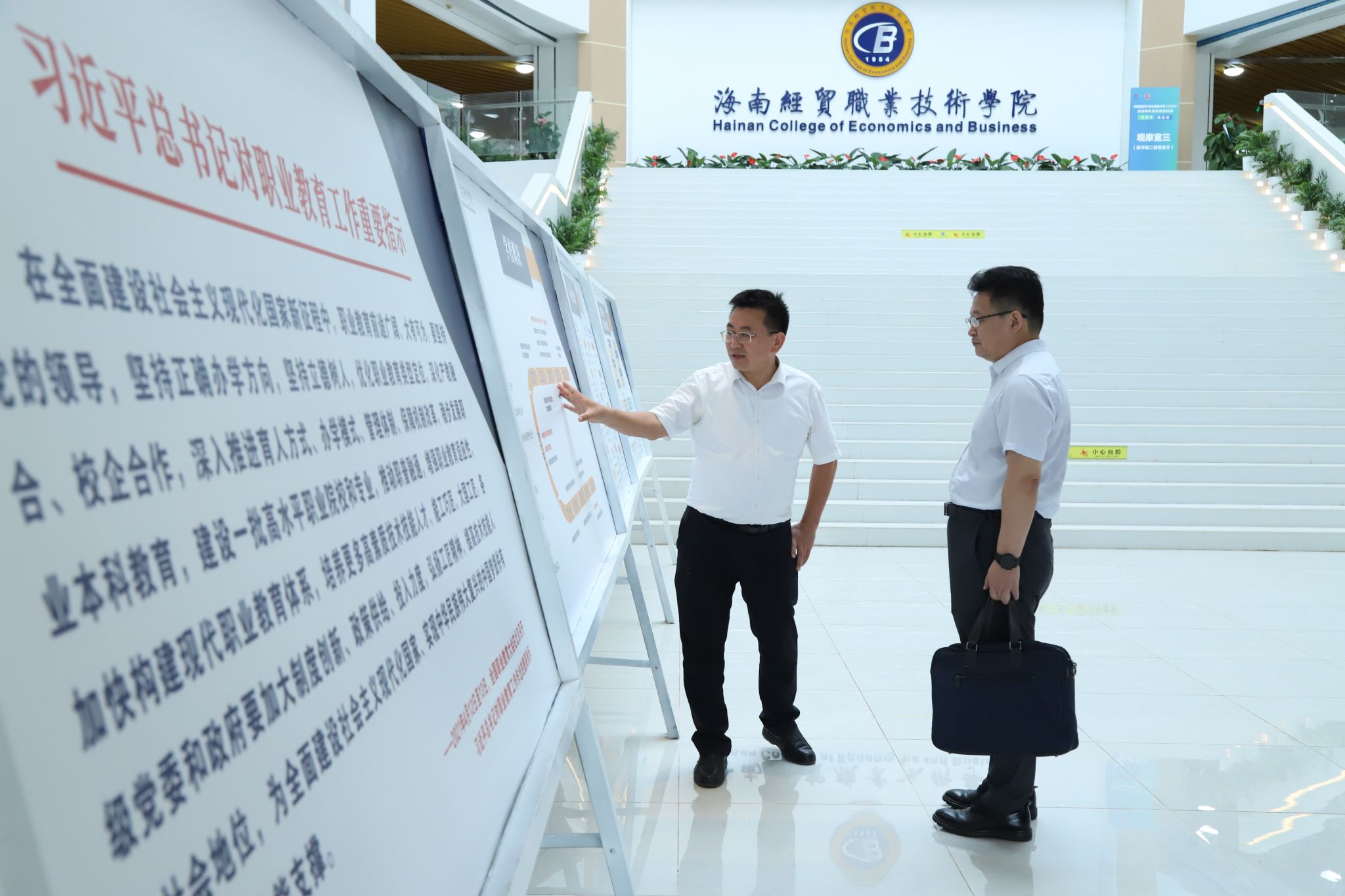 崔昌华欢迎李勇一行到校调研交流,对海南农商银行多年来为学校提供的各项服务和支持表示感谢。他说,学校正处于全力申办本科职业大学的关键期,各项事业发展呈现新气象,期待银行继续为学校发展给予有力支持,双方充分发挥各自优势,深化拓展合作领域,在“智慧校园”建设、金融教育宣传、党建共建等多领域加强实践探索,携手为强国建设、民族复兴作出更大贡献。