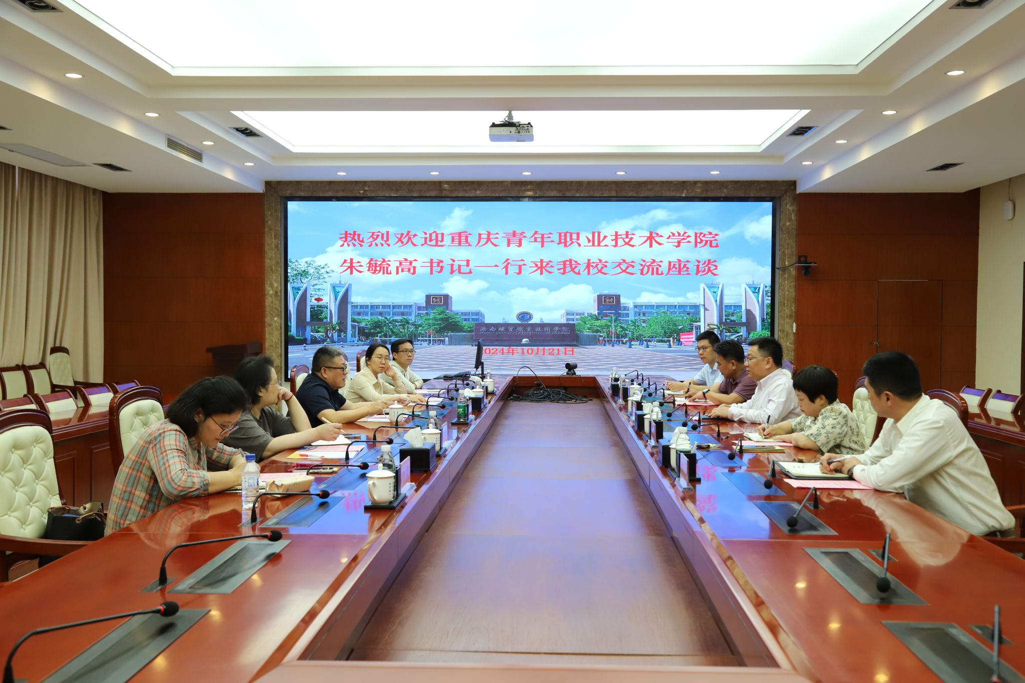 2024年10月21日,重庆青年职业技术学院党委书记朱毓高,党委委员、副校长杨娟一行5人来到kaiyun登录中国入口登录,就推进产教融合、专业群建设等相关工作进行交流。学校党委书记王华,党委委员、副校长万力维热情接待了朱毓高一行。