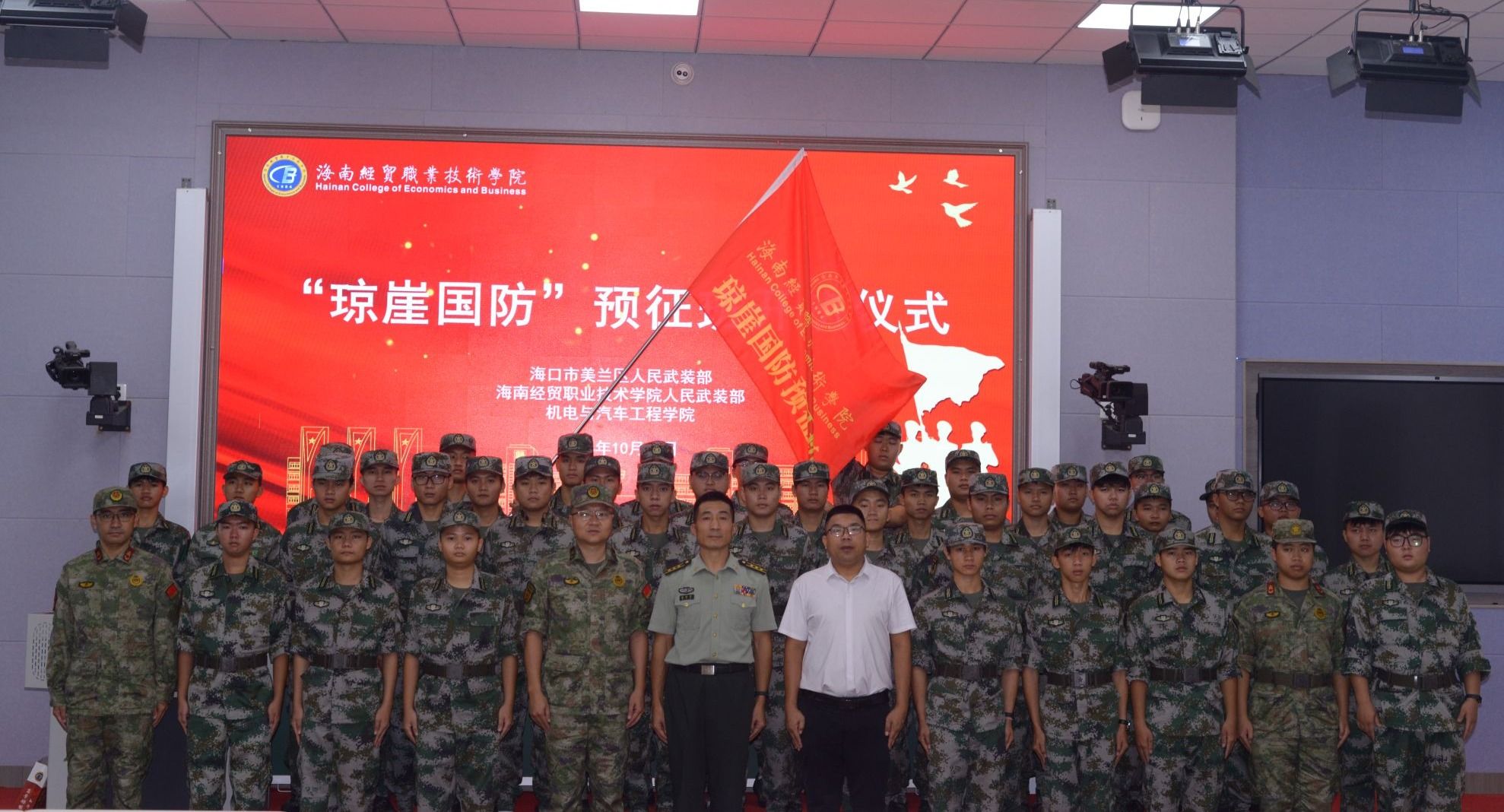 仪式在庄严的国歌声中开始,海口市美兰区区委常委、区人民武装部上校部长谢继军向学员代表授旗。他鼓励学员们要明确奋斗目标,让“红色种子”在心中扎根发芽,指引前进方向,将小我融入大我,将“个人梦”融入“中国梦”。