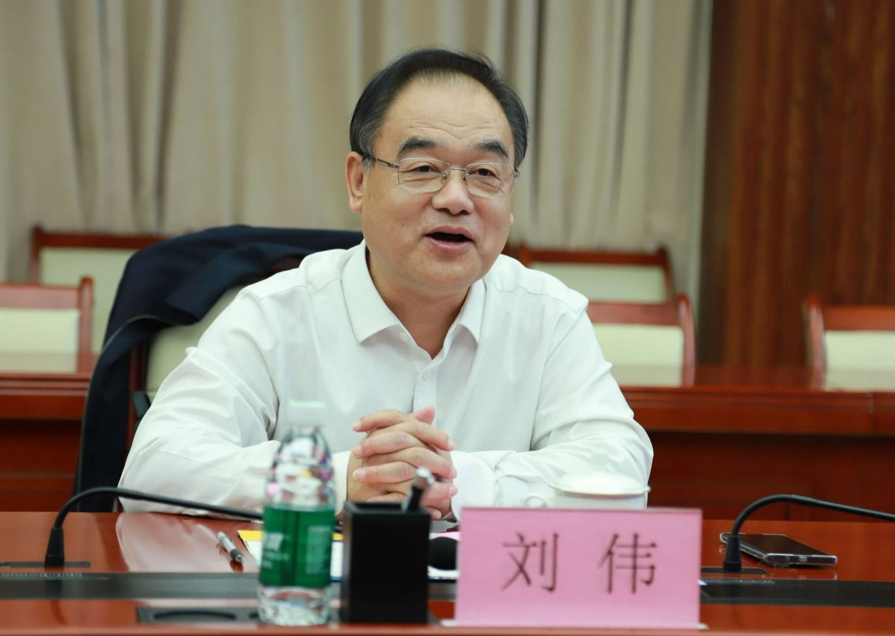 王华向刘伟一行介绍学校基本情况