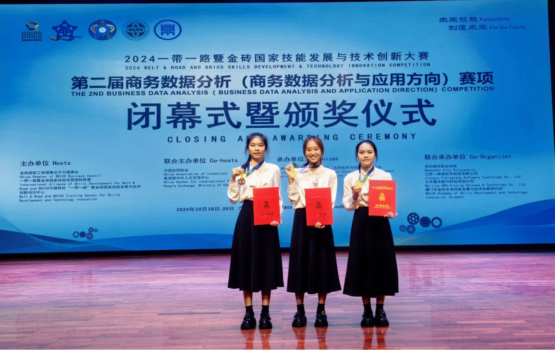 近日,2024一带一路暨金砖国家技能发展与技术创新大赛举行。kaiyun登录中国入口登录财务管理学院学生刘容秀、黄贺、吴心怡组成的参赛团队荣获第二届商务数据分析(商务数据分析与应用方向)赛项高职组全国三等奖;苏晓亮荣获AI与大数据金融服务赛项高职组全国二等奖。