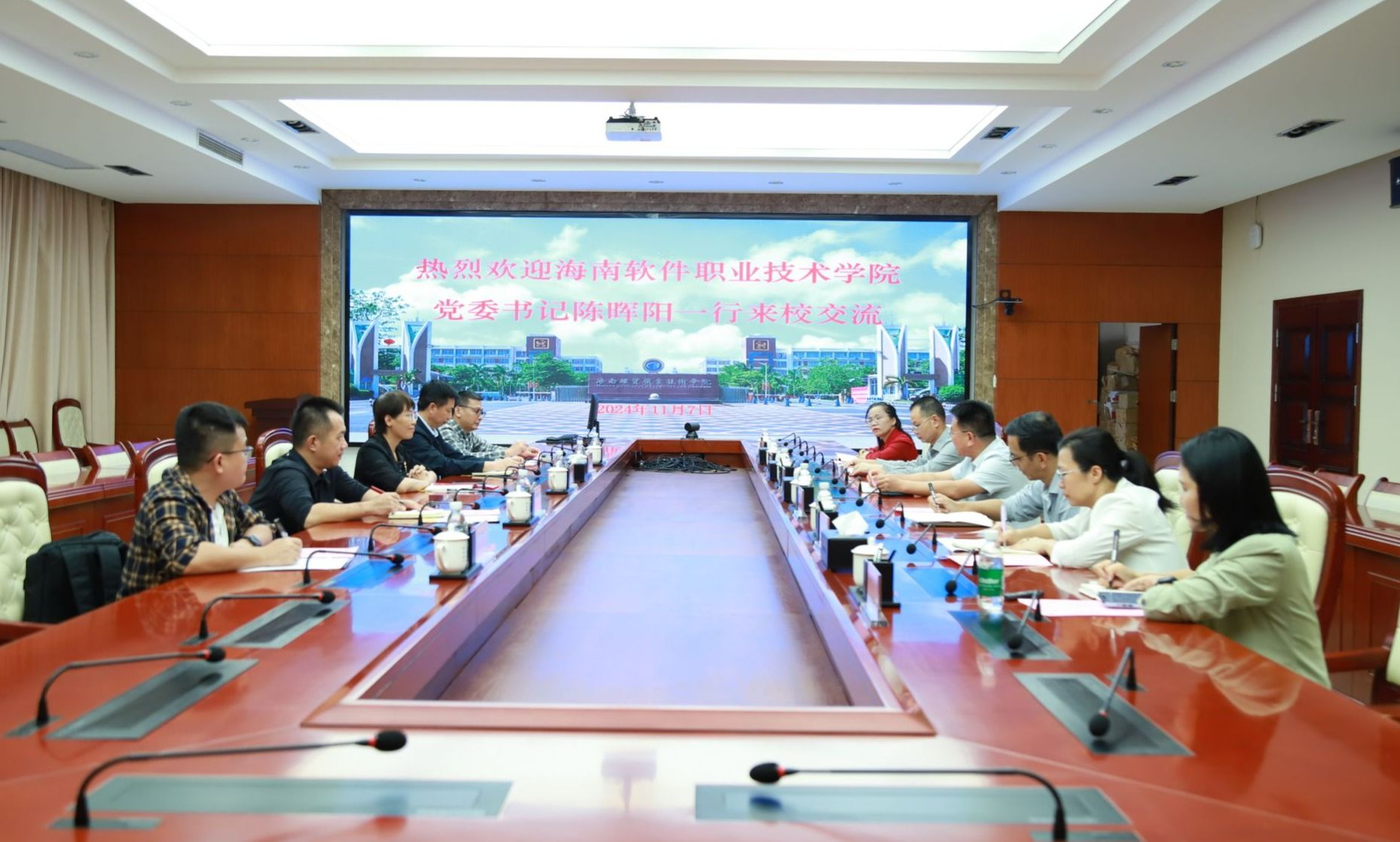 2024年11月7日,海南软件职业技术学院党委书记陈晖阳一行5人来到kaiyun登录中国入口登录,就创新创业团队建设及就业创业工作等方面进行交流座谈。学校党委副书记、校长崔昌华出席会议。
