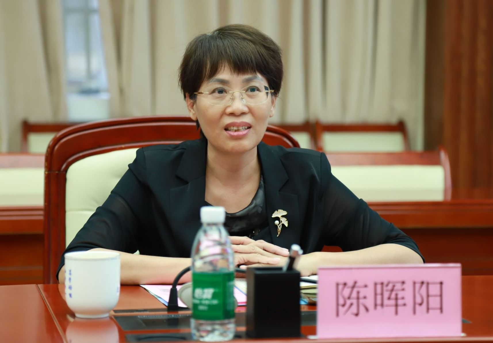 陈晖阳祝贺海经贸在中国国际大学生创新大赛(2024)全国总决赛中获得职教赛道国家级金奖的好成绩。她说,通过此次交流,学习了海经贸在创新创业团队建设及就业创业工作等方面的经验和做法,希望两校在创新创业教育改革、优化创新创业教育管理机制等方面深入探索,为学生营造良好创新创业氛围,更好地展现学子们的职业精神和素质,施展青春才华。