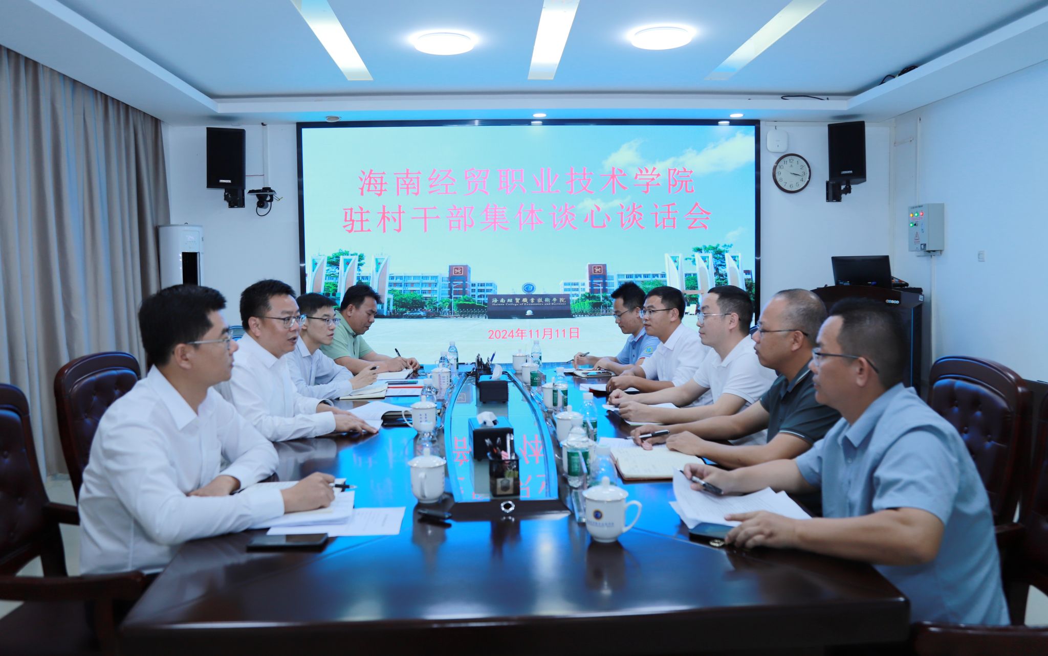 学校派驻昌江黎族自治县水头村“第一书记”王师庆,省派驻海口市云龙镇云岭村、红旗镇红旗村、三江镇茄苪村、三门坡镇清泉村干部文有科、黄银亮、赵会达、郑磊分别对乡村振兴工作进行了汇报。他们从所在村整体情况、个人工作开展、产业发展、存在困难和问题、下一步工作计划等方面汇报了乡村振兴相关工作。各乡村振兴工作队干部感谢学校党委的关心和关爱,表示将继续脚踏实地做好驻村工作,当好乡村振兴的“排头兵”,为巩固拓展脱贫攻坚成果,全力推进乡村振兴贡献海经贸力量。