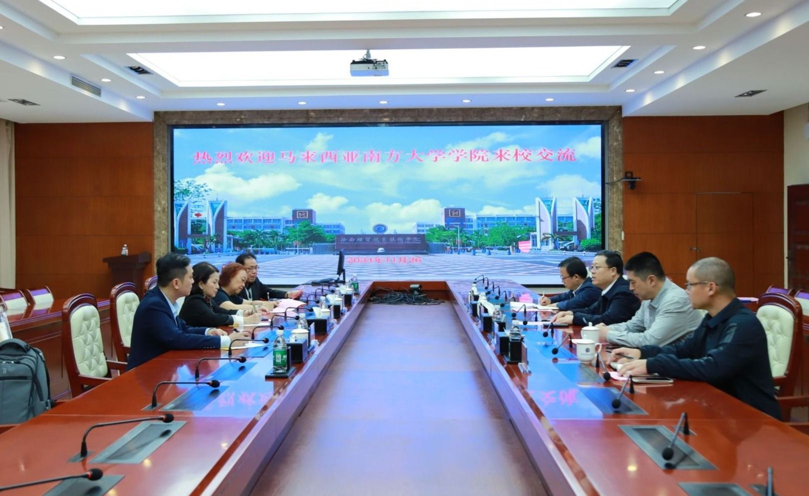 郑惠珍介绍了南方大学学院的校史沿革和发展、专业设置等情况,并表示此次交流搭起了两校沟通合作的桥梁,双方可以在人才联合培养等方面积极探索合作路径,在课程衔接、双语教学、职业教育等方面加强交流,不断拓展国际合作资源,更好地促进两校高质量发展。