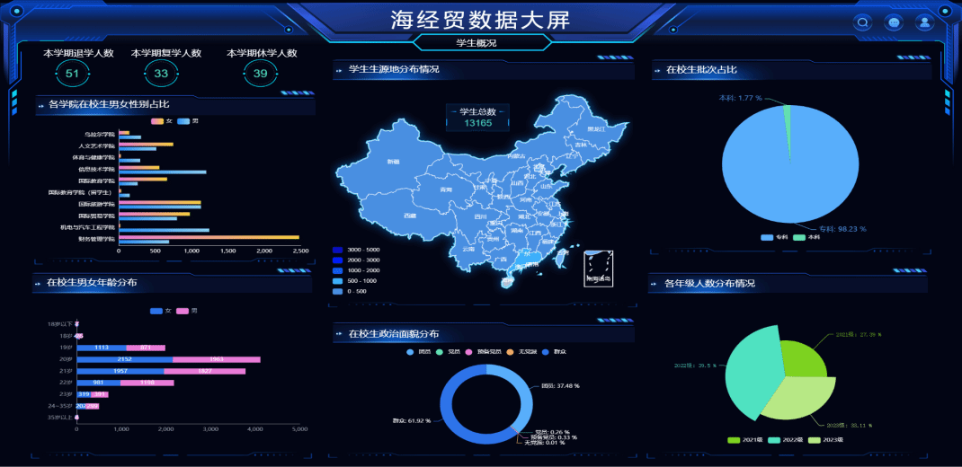 学校将信息化建设和数字化转型纳入“十四五”规划,近年来着力加大智慧校园建设力度,开展数字安防系统升级改造、智能设施和物联感知系统建设、智慧校园应用中心升级改造、网上办事大厅等项目,夯实了信息化软硬件基础,提高了运行效率和安全保障。建立了统一的数据资产管理平台,通过“数据跑”代替“人工跑”,大幅度提升事项办理效率。建成了智能财税虚拟仿真实训中心、数字艺术虚拟仿真创新中心、思政课程虚拟仿真实训中心、智能控制虚拟仿真实训中心、精益创业实训中心、金融虚拟仿真实训中心等多个虚拟仿真实训中心,为专业实训教学提供了类型多样丰富的教学内容库。全面开设人工智能导论、数据分析等相关课程,对现有专业进行全面数字化升级。学校以海南数据超市经贸分中心为载体,实现了学校与产业对接,开展行业数据分析与挖掘工作,与高校、科研机构和企业等开展科研合作。一系列智慧校园成果,为师生创造了更加智能、高效、安全的学习与工作环境。