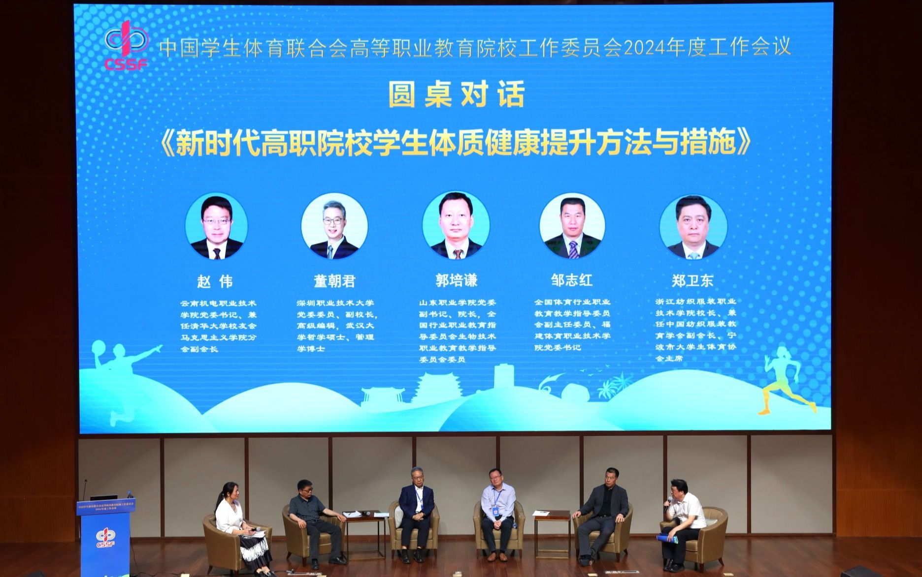 在校领导圆桌对话环节,与会校领导、专家和参会代表就学生体质健康提升方法与路径、聚焦学校体育工作创新驱动发展等专题,从校园体育工作观测点的分析、如何培养学生身体素质并培养健康生活理念、如何推动校园体育发展、与职业发展的结合等多角度,进行了互动对话,交流气氛活跃。