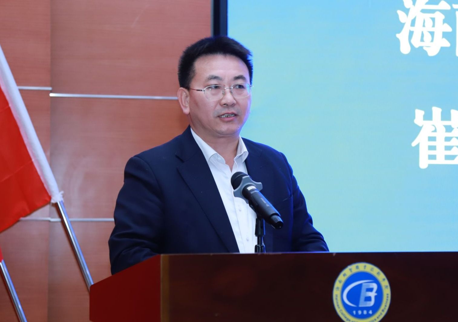 崔昌华向出席仪式的各位领导和嘉宾表示热烈的欢迎和诚挚的感谢。他说,近年来学校始终坚持服务自贸办经贸,深化产教融合、校企合作,致力于培养具有创新能力和实践素养的高素质技术技能人才。上海爱餐和海口普拉师公司向海经贸捐赠烹饪机器人,不仅是对海经贸教育事业发展的重大支持,更是对学校培养适应行业企业需求、具备现代技术能力的高素质人才的深切期望。本次捐赠为学校提供了坚实的配套支撑,丰富了教学资源,拓展了旅游、机电、信息技术、国际贸易等专业的创新教学方案。学校将充分利用好这批设备,加强与企业合作,打造全新实训环境,促进学生更好了解掌握行业前沿和未来数字厨电发展趋势。最后,他祝福爱心企业的事业再创佳绩。