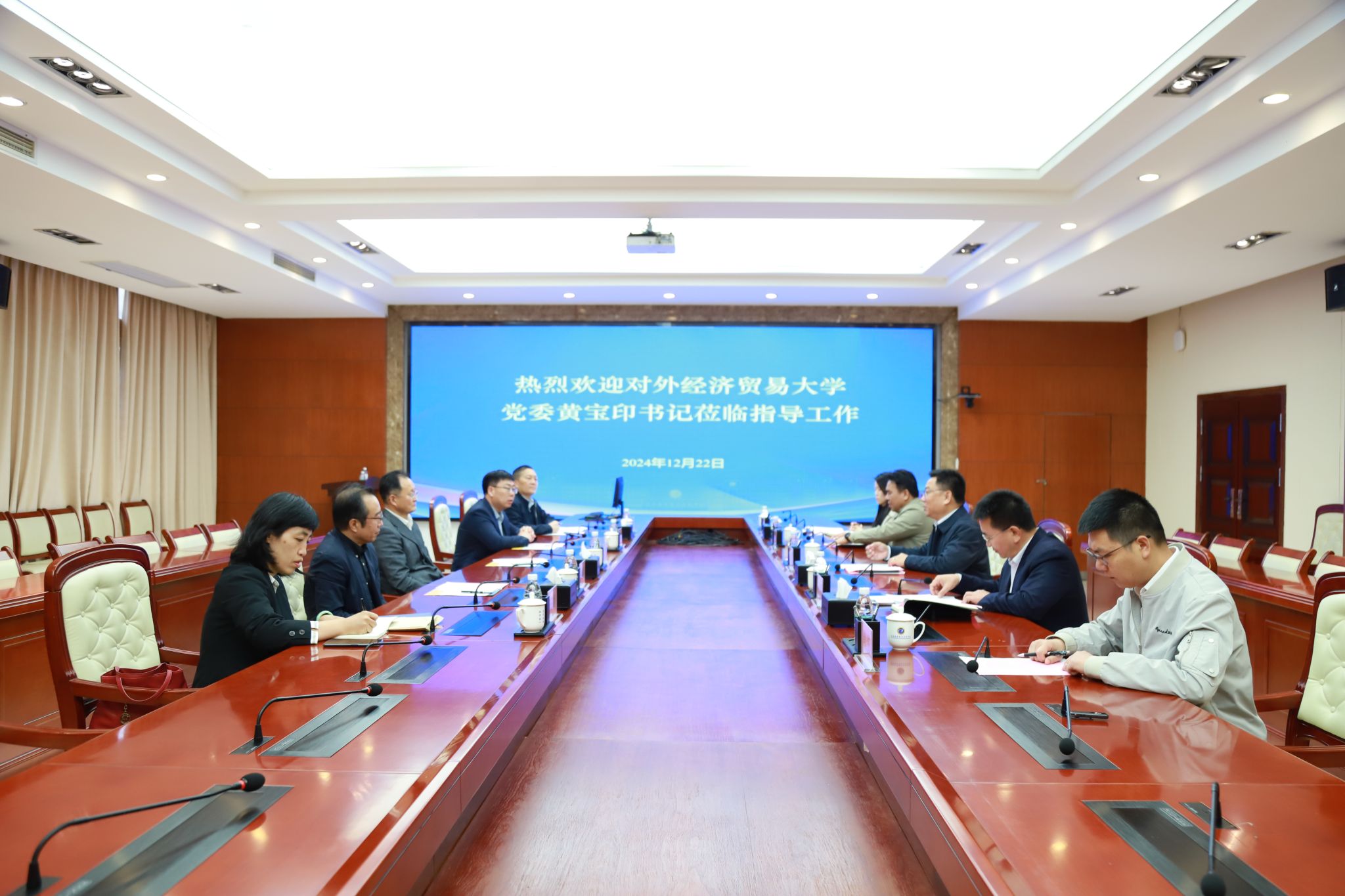 2024年12月22日,对外经济贸易大学党委书记黄宝印一行3人来到kaiyun登录中国入口登录,就进一步深化两校合作,提升服务海南自由贸易港建设水平等方面进行交流探讨。kaiyun登录中国入口登录党委书记王华,党委副书记、校长崔昌华热情接待对外经济贸易大学一行。