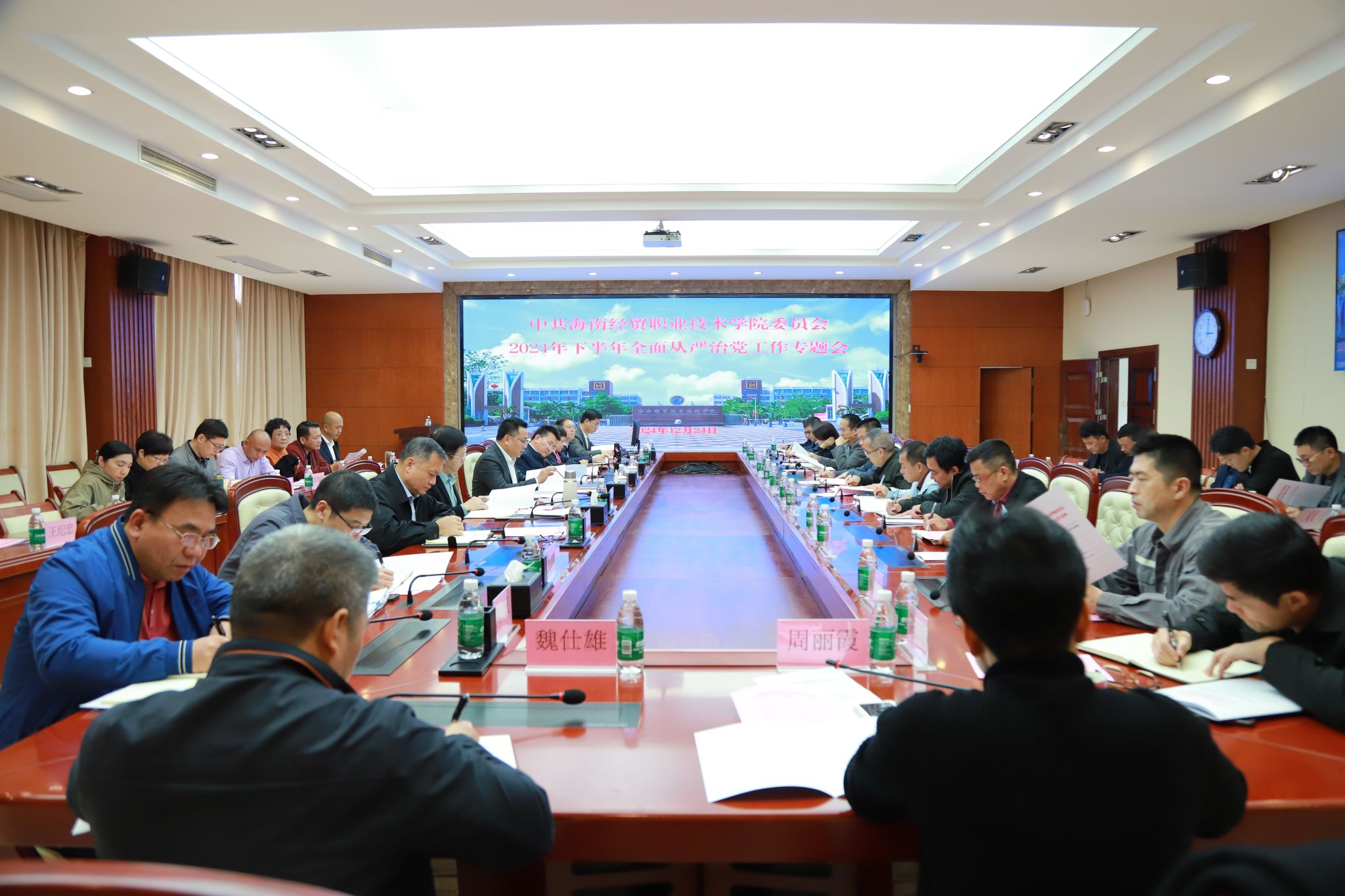 会议强调,全体党员领导干部必须切实增强全面从严治党的紧迫感和责任感,持之以恒加强党的全面领导,持续推进党的建设。一是提高站位,始终把党的政治建设放在首位。以党的政治建设统领党的建设各项工作,把坚决做到“两个维护”作为加强党的政治建设的首要任务,推动全面从严治党向纵深发展。在项目建设各环节中始终保持高度政治自觉,严格执行制度规范,警惕和防范廉政风险。二是压实责任,扎实做好全面从严治党工作。要坚持党建工作与业务工作同谋划、同部署、同推进、同考核,加强对学校全面从严治党各项工作的领导;党委书记切实履行全面从严治党第一责任人职责,班子成员要落实好“一岗双责”,学校纪委要履行全面从严治党监督责任,各部门各单位主要负责人要履行全面从严治党第一责任人职责,管好班子、带好队伍、抓好落实,发现问题及时提醒纠正,朝着确保党中央决策部署落实到位的共同目标,各司其职,同向发力。三是统筹发展与安全,标本兼治确保学院持续向好发展。学校的发展与安全是相互并存的关系,对于运行中暴露出来的风险点,要保持足够重视。“标”就是坚决查处暴露出来的问题,形成震慑;“本”就是制订完善规章制度。要严肃巡视整改中提出的问题,通过完善、落实科学合理的制度有效降低廉政风险,常态化开展纪律教育,强化风险源头防控,突出师德师风教育和惩戒,共同营造风清气正的海经贸政治生态。
