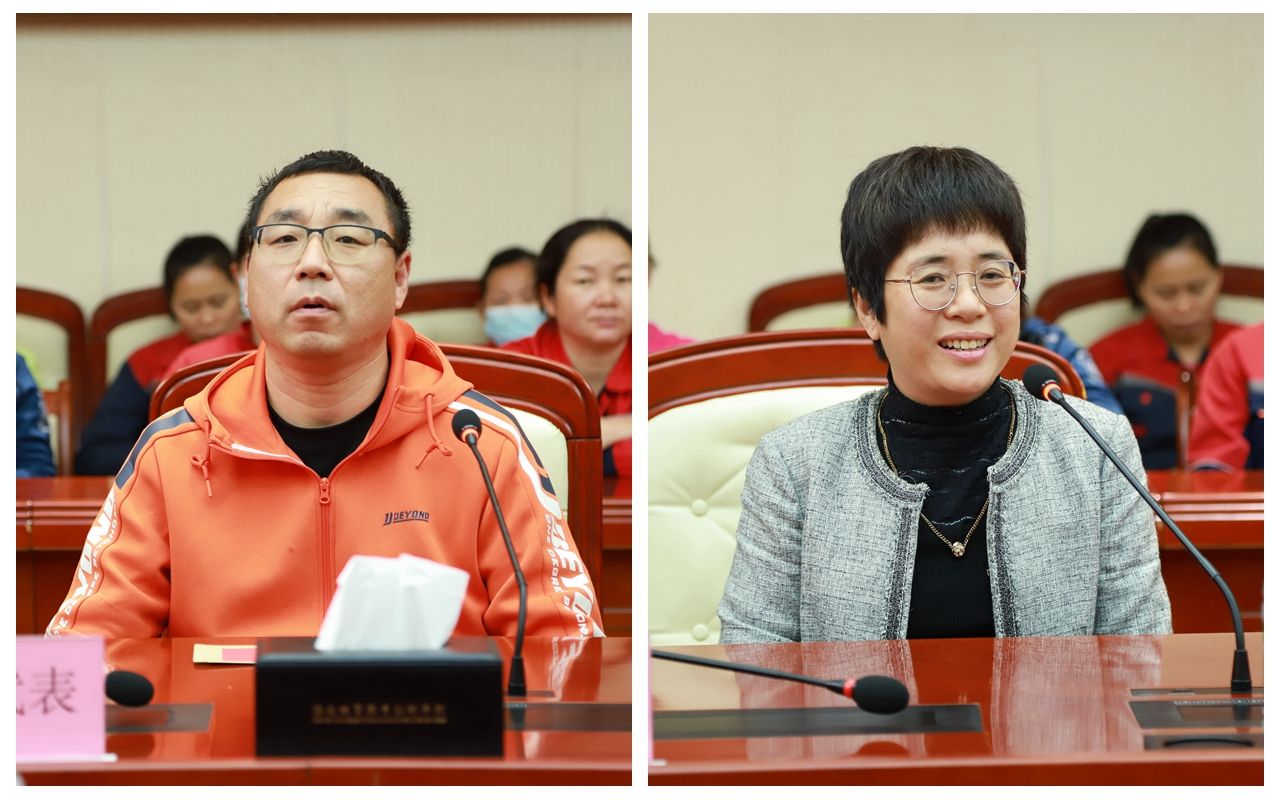 黄英超、王多惠作为慰问教职工代表发言。他们感谢学校党委和工会的深切关怀,分享了自己倍感温暖、深受感动的心情,表示将立足岗位,努力工作,以更加热情的工作态度回报学校的关爱与支持,积极参与到学校的各项建设工作中来,为推动学校高质量发展贡献自己的智慧和力量。