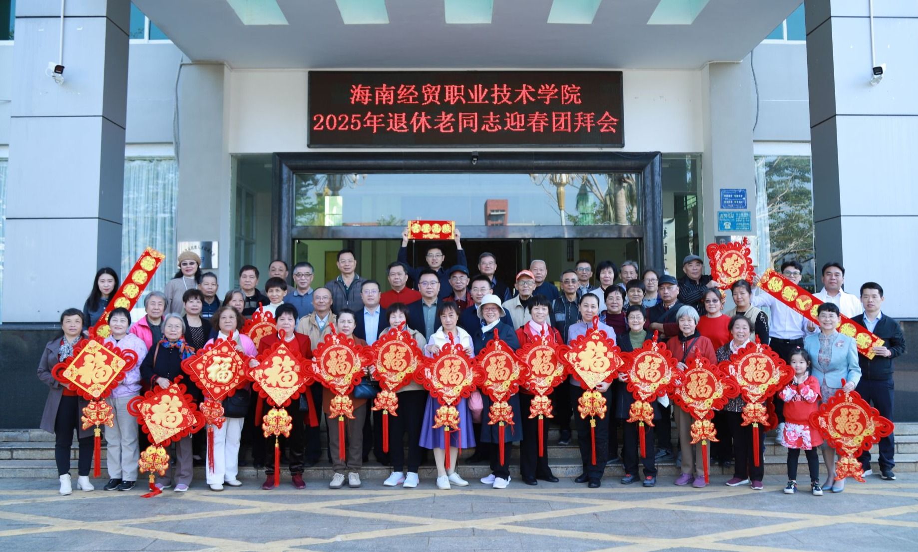 团拜会在欢快喜庆的乐曲和其乐融融的氛围中拉开帷幕。王华向全体退休老同志致以诚挚的问候和美好的祝福。他回顾了过去一年学校所取得的成绩,充分肯定了学校关工委继续发挥“银发”智慧所取得的优异成果。他说,树高千尺总有根,吃水不忘挖井人。学校各项事业的发展成果离不开在座老同志们的关心关注和鼎力支持。新的一年学校将以申报“新双高”和申办本科职业大学为主线,进一步凝心聚力、砥砺奋进,为早日建成具有国际影响力的中国特色高水平职业技术大学而不懈奋斗,为教育强国建设贡献海经贸力量。