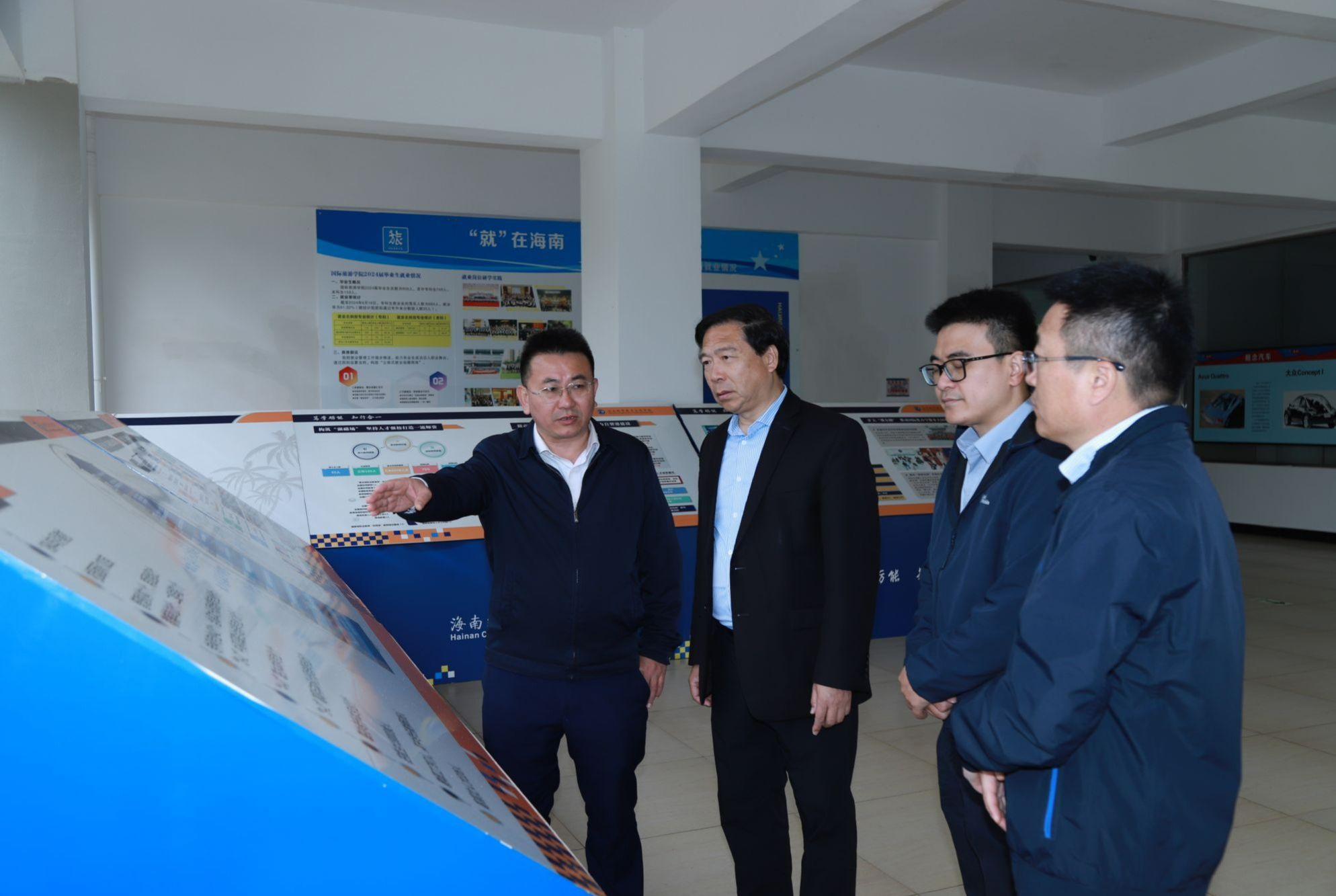 在崔昌华的陪同下,张雁一行参观考察校园,了解海经贸建校历史、人才培养、产教融合、国际合作、“双高”建设和本科职业大学申办的有关情况;在汽车检测与维修实训室中心、数智财务产教融合实践基地和新一代信息技术ICT产教融合基地,听取有关负责人介绍专业发展、校企合作的相关内容和近年来人才培养取得的成绩。