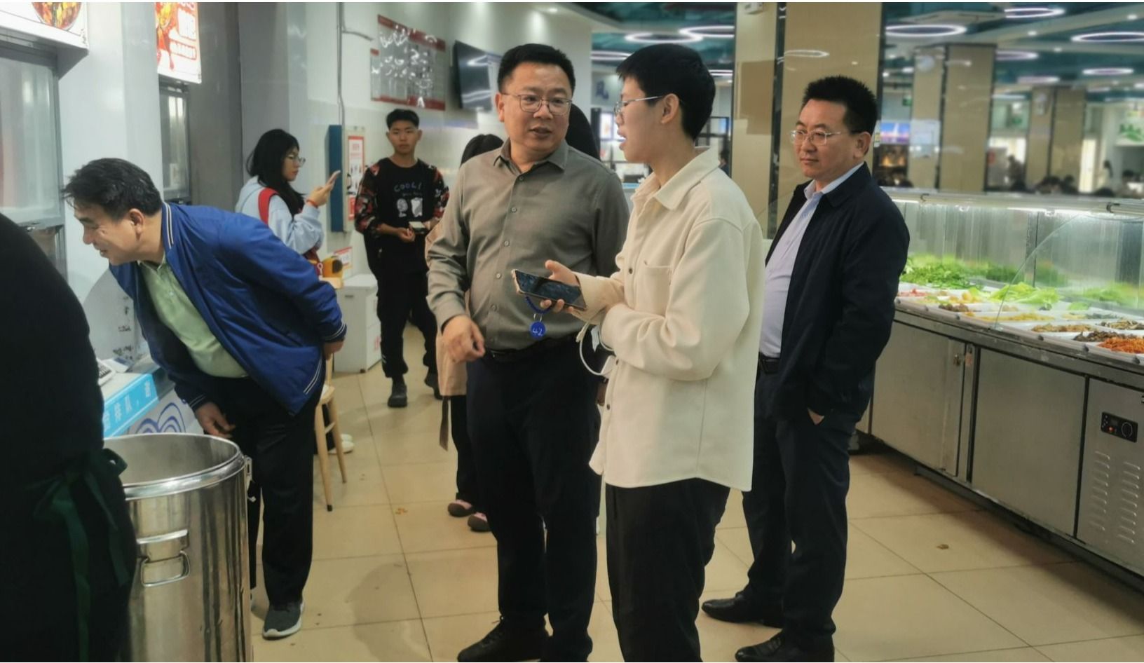 用餐前,校领导认真查看了食堂的卫生环境,详细询问有关负责人食品采购和加工流程、食材储存、烹饪设备和餐具的卫生状况,了解食堂工作人员的操作规范、各档口的经营管理、食品留样制度落实等情况,对食品卫生和食堂消防安全问题进行提醒,要求食堂严格把控食材质量关,提高从业人员的食品安全意识和操作技能,确保食品安全可追溯,及时整改存在的问题,确保校园食品安全零事故。