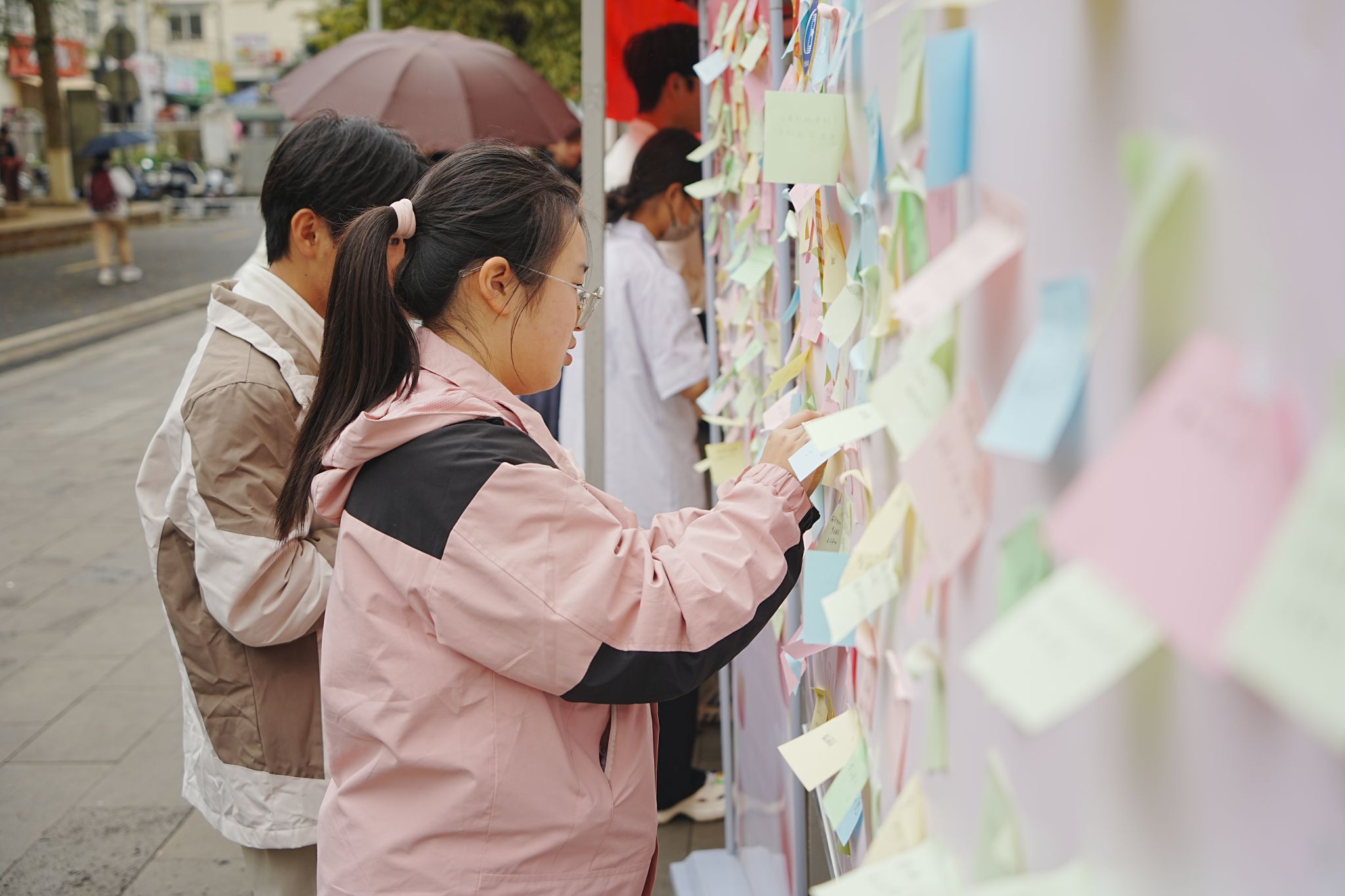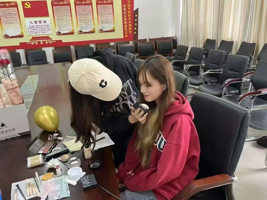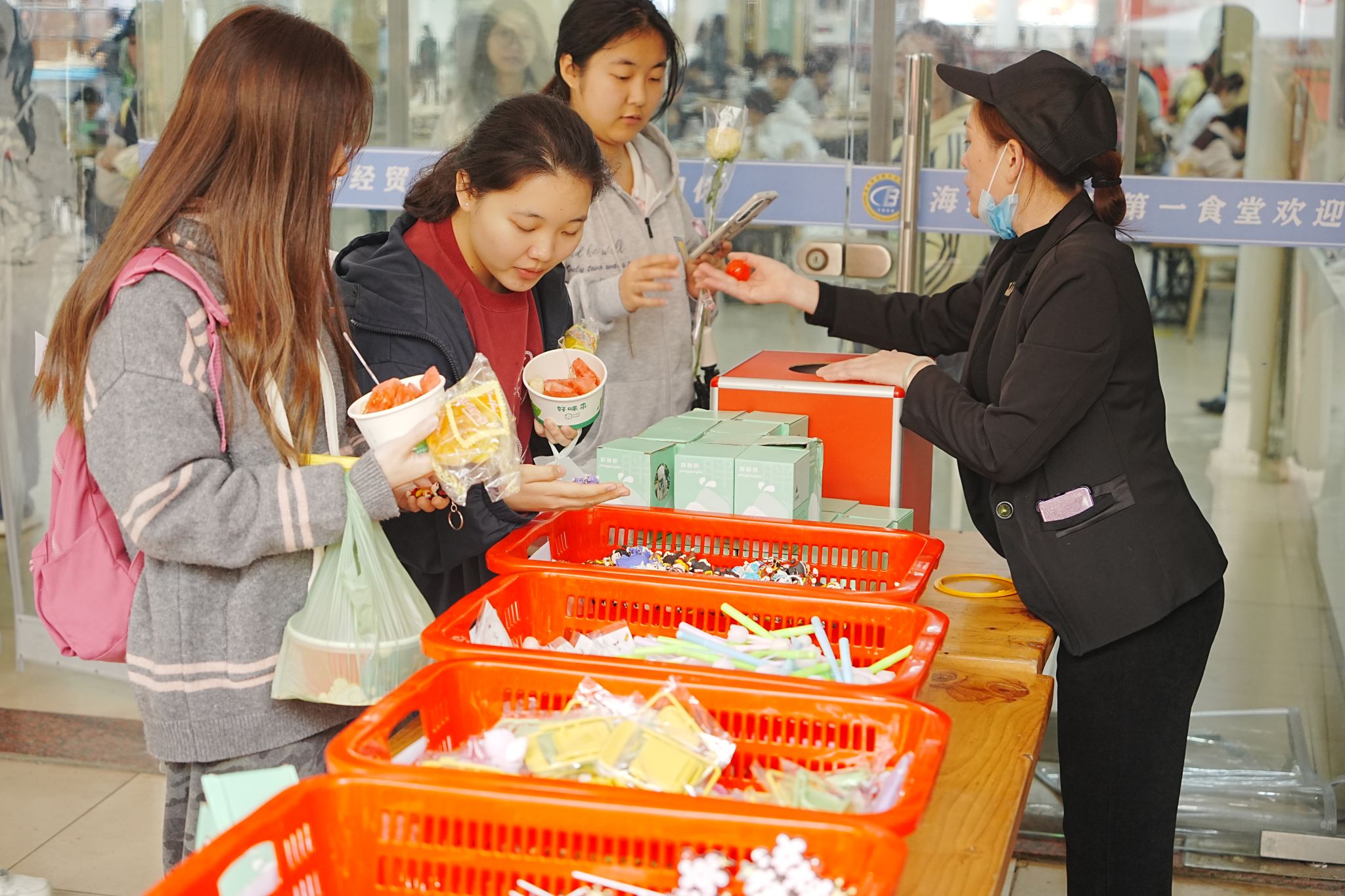 学校党委副书记、校长崔昌华在学生食堂为同学们送去亲切祝福,他勉励大家好好学习,与学校高质量发展同向同行,祝愿所有女同学们节日快乐。学生食堂前广场热闹非凡,大家在这里写祝福语、领取鲜花和食堂代金券。美妆社团的志愿者们为来往的女同学们发放化妆物品和工具,还设置了幸运抽奖环节,让大家惊喜连连。