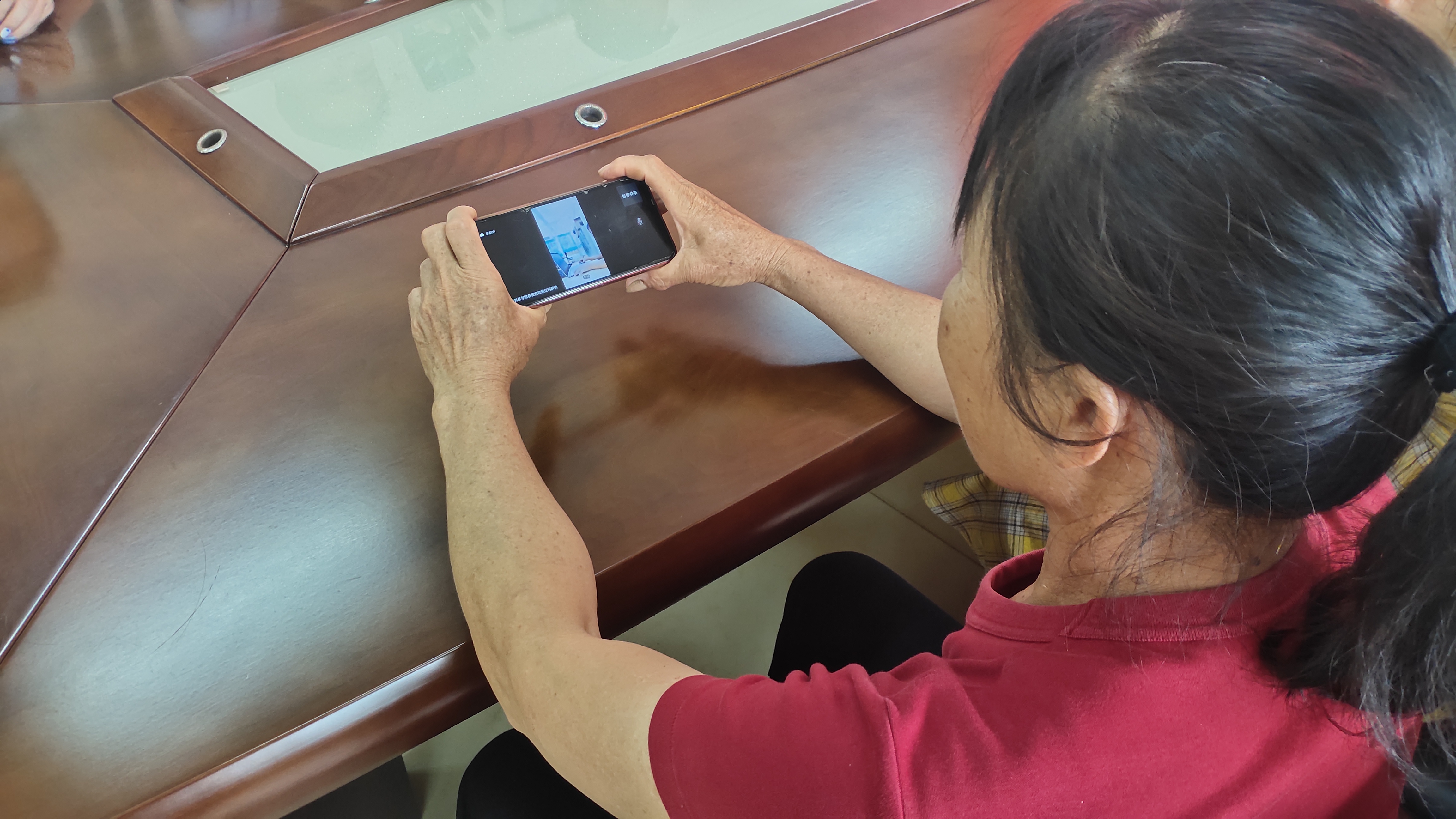 村民们通过手机收看直播。