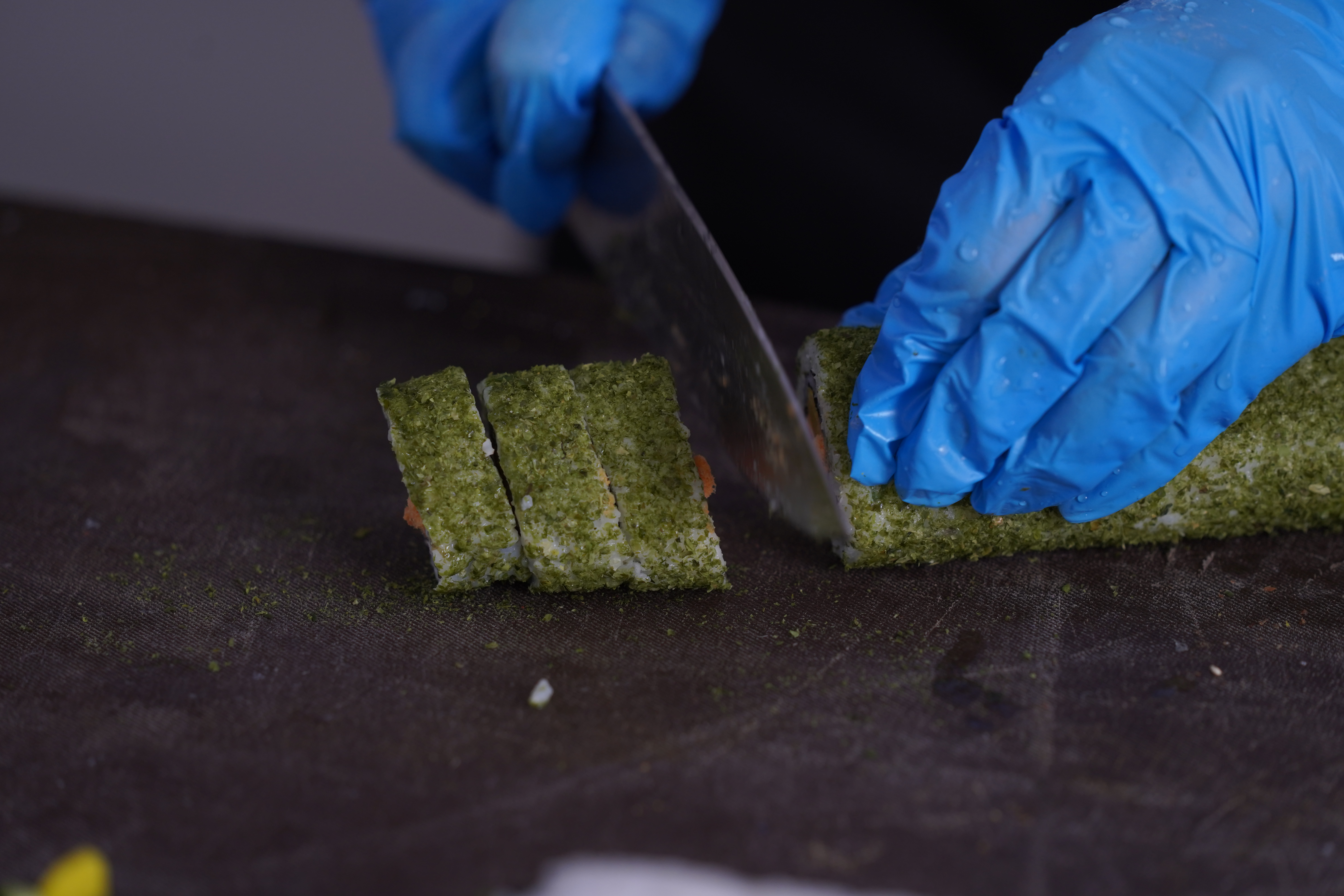 海经贸学生在线教做寿司。