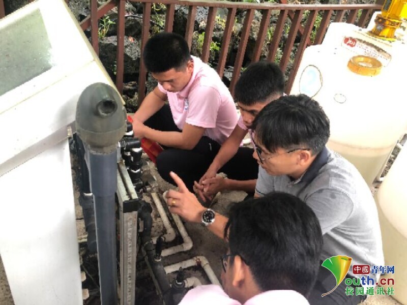 图为指导老师讲解石斛园内的水肥一体化系统。中国青年网通讯员 黄彩凤 供图。