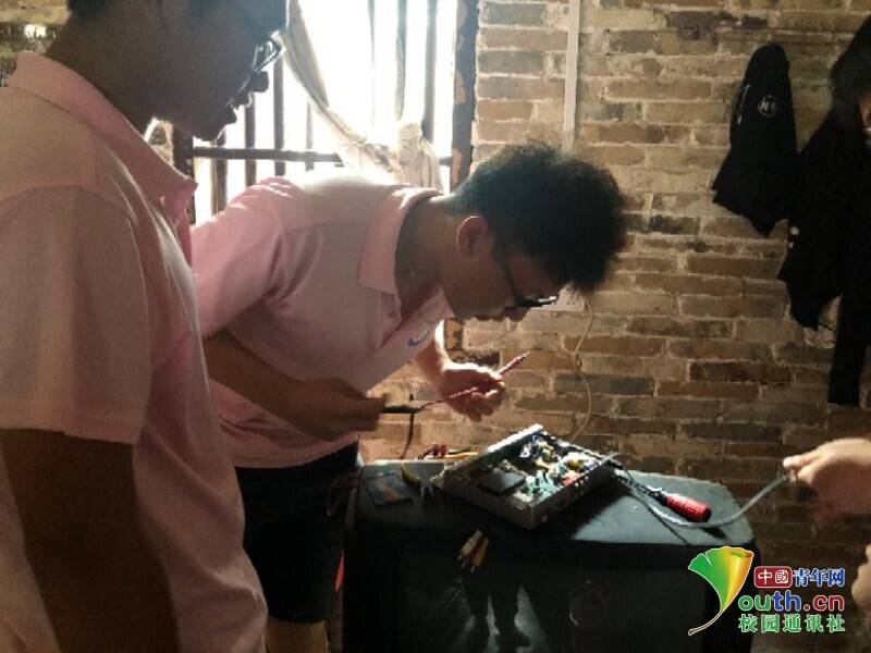 图为实践队员正在检修电路。中国青年网通讯员 黄彩凤 供图。