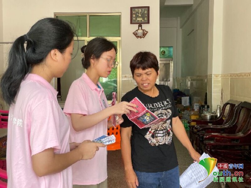 图为实践团队向村民讲解用电安全手册内容。中国青年网通讯员 黄彩凤 供图。