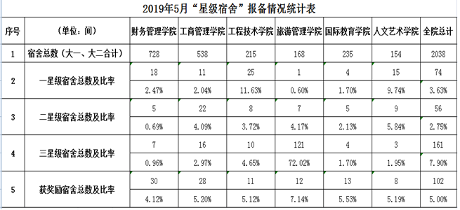 2019年5月“星级宿舍”报备结果汇总表
