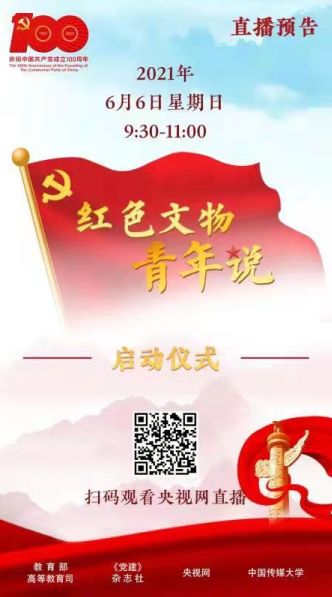 为深入贯彻落实习近平总书记关于《用好红色资源,讲好红色故事,搞好红色教育,让红色基因代代相传”的重要 指示,引领青年学子深入学习百年党史、弘扬革命精神、激 发爱国热情,推动红色文化创造性转化、创新性发展,教育部高等教育司指导高校新闻传播学类教学指导委员会,会同中宣部《党建》杂志社制作了 “红色文物青年说”微课程,并定于2021年6月6日举(周日)9:30 -11:00在京举办“红色文物青年说”启动仪式。启动仪式全程网上直播。