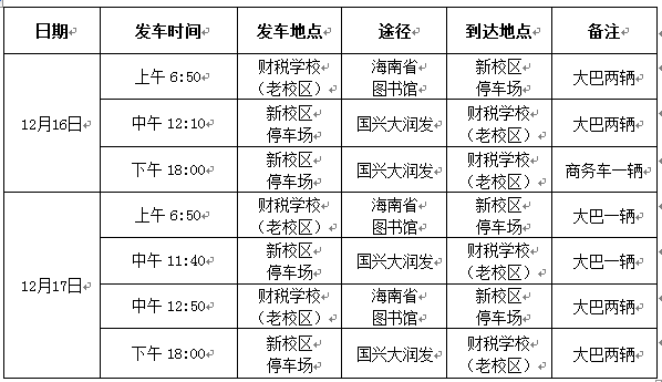 根据2017年下半年全国大学英语四、六级考试和高等学校英语应用能力考试时间安排,12月16-17日校车发车时间安排如下: