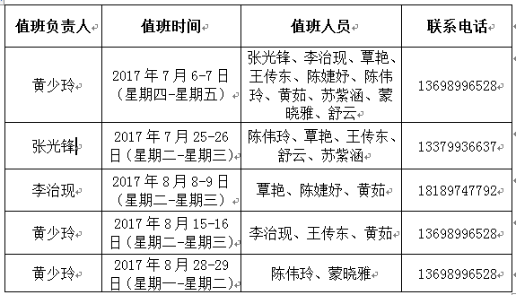 为确保暑假期间学校各项业务顺利推进,计划财务处暑假值班安排如下: