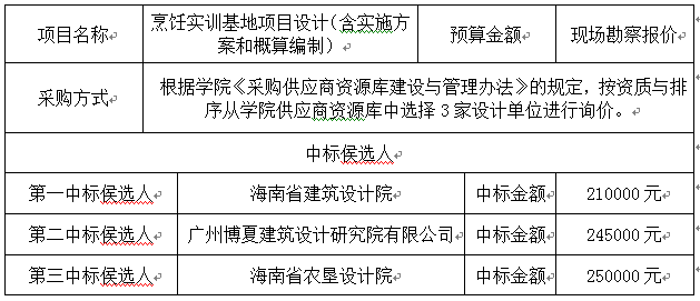 关于烹饪实训基地项目设计(含实施方案和概算编制)项目询价结果的公示