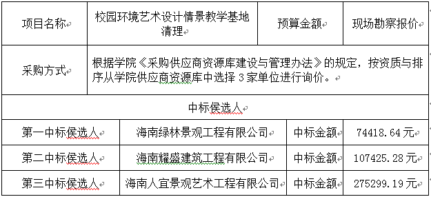 关于校园环境艺术设计情景教学基地清理项目询价结果的公示