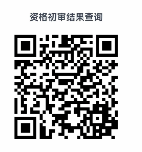 请考生扫描二维码输入报名时提交的姓名及身份证号码即可查看资格初审结果。