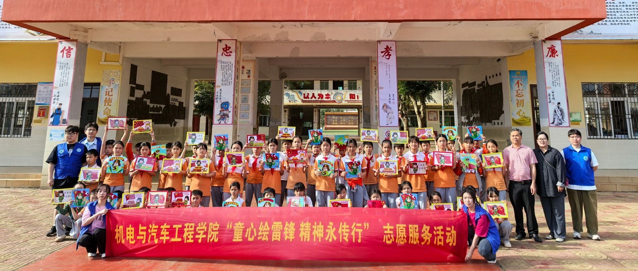 三月春风轻柔,雷锋精神在这温暖的季节里熠熠生辉。近日,机电与汽车工程学院团总支组织志愿者队伍前往海口市琼山区红旗镇红旗中心小学,开展了一场别开生面的“童心绘雷锋,精神永传行”主题支教活动。志愿者们与小朋友们携手,用五彩画笔与灵巧双手,共同描绘雷锋形象,用心感悟雷锋精神的深刻内涵。