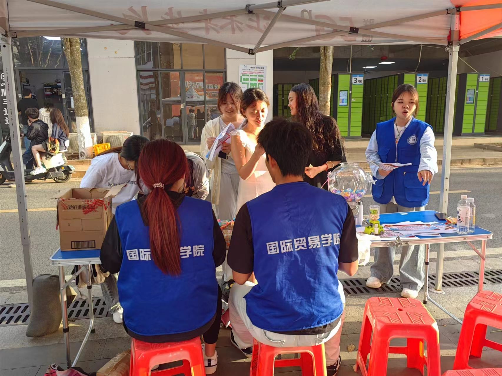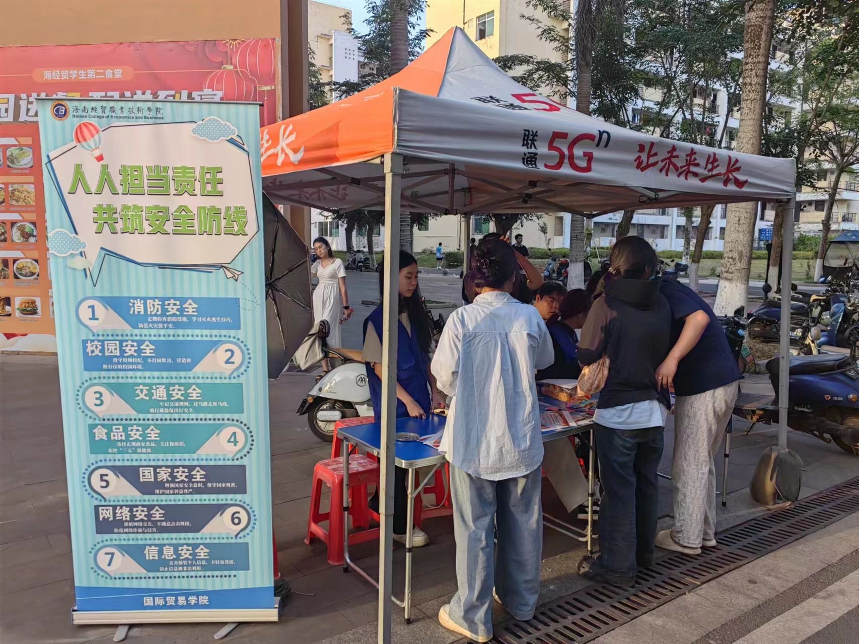 为深入贯彻落实总体国家安全观,增强师生国家安全意识,国际贸易学院在4月15日“全民国家安全教育日”当天,在学生第一食堂门口组织开展了一场趣味问答活动。活动以“国家安全,人人有责”为主题,通过寓教于乐的形式,吸引学生积极参与。