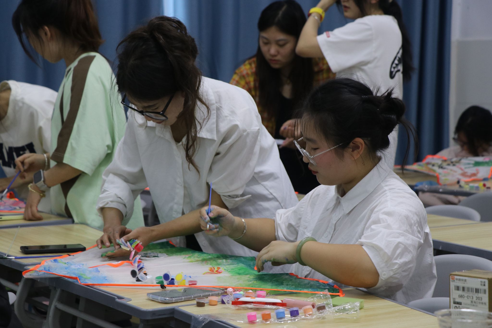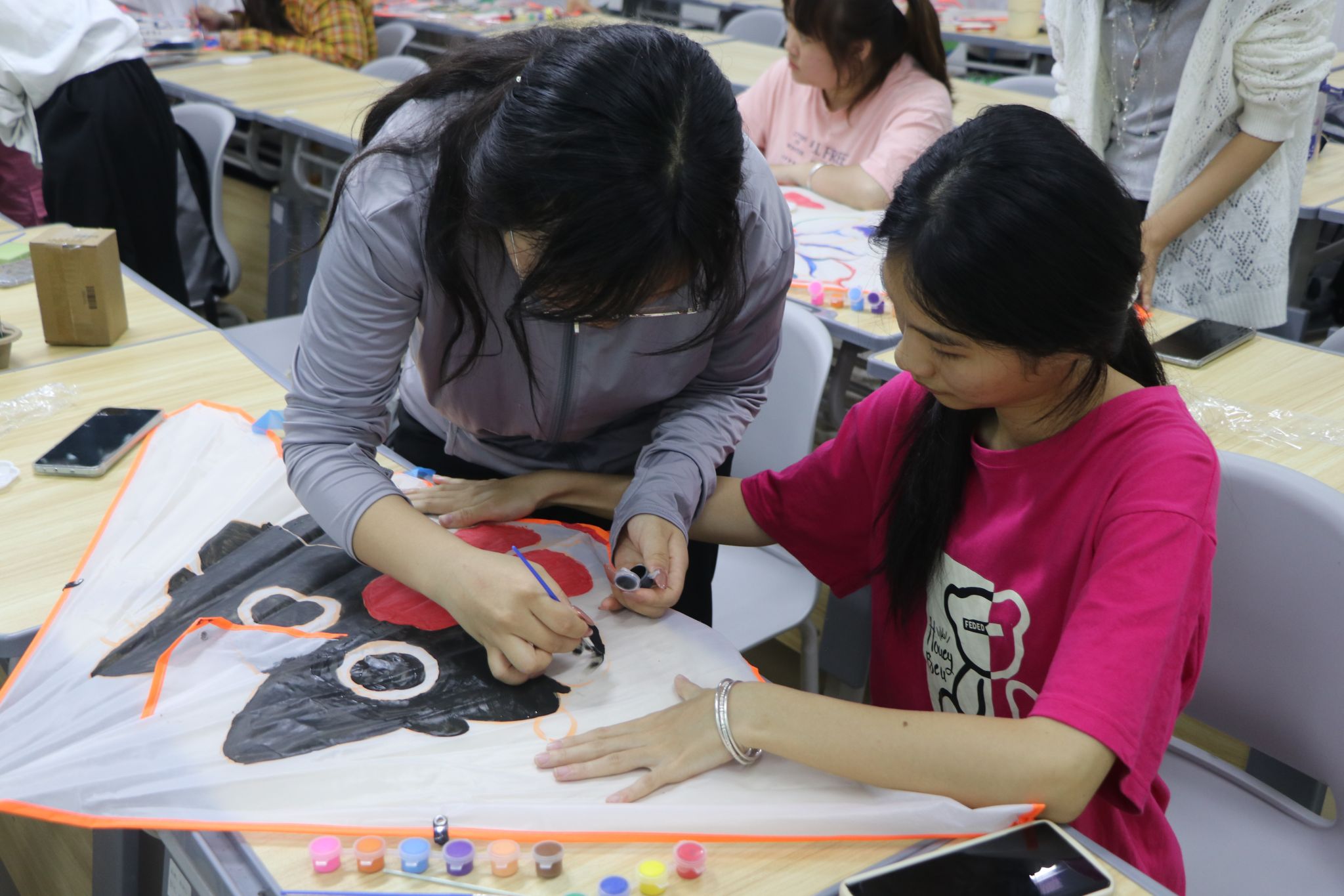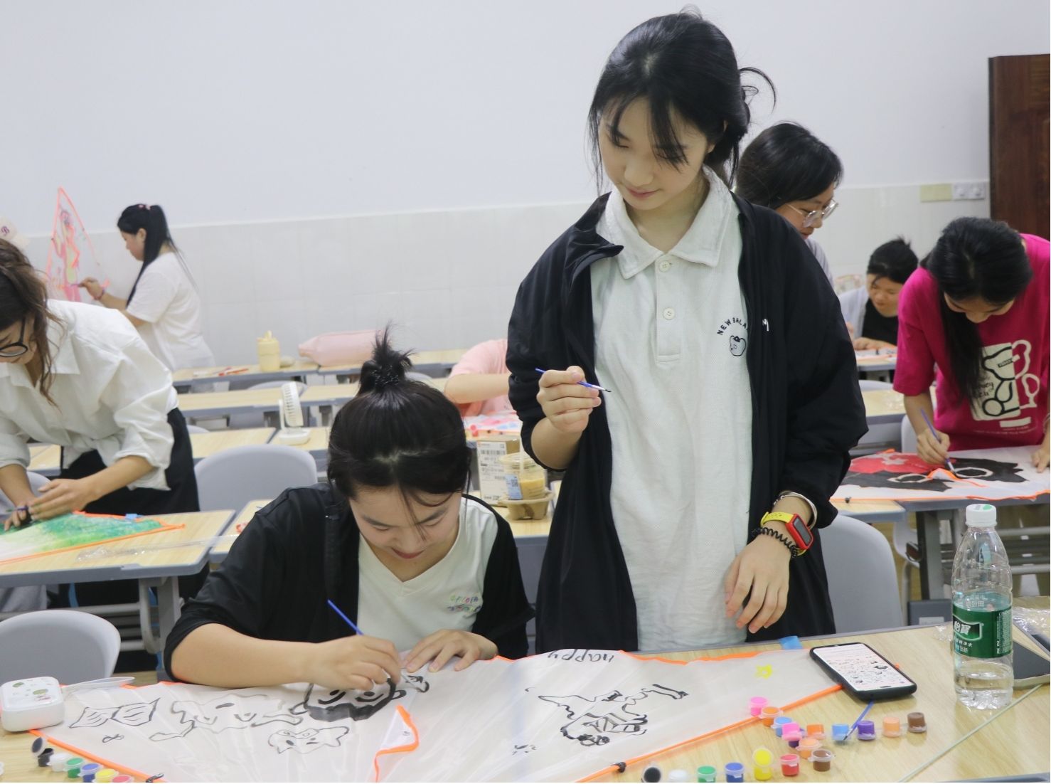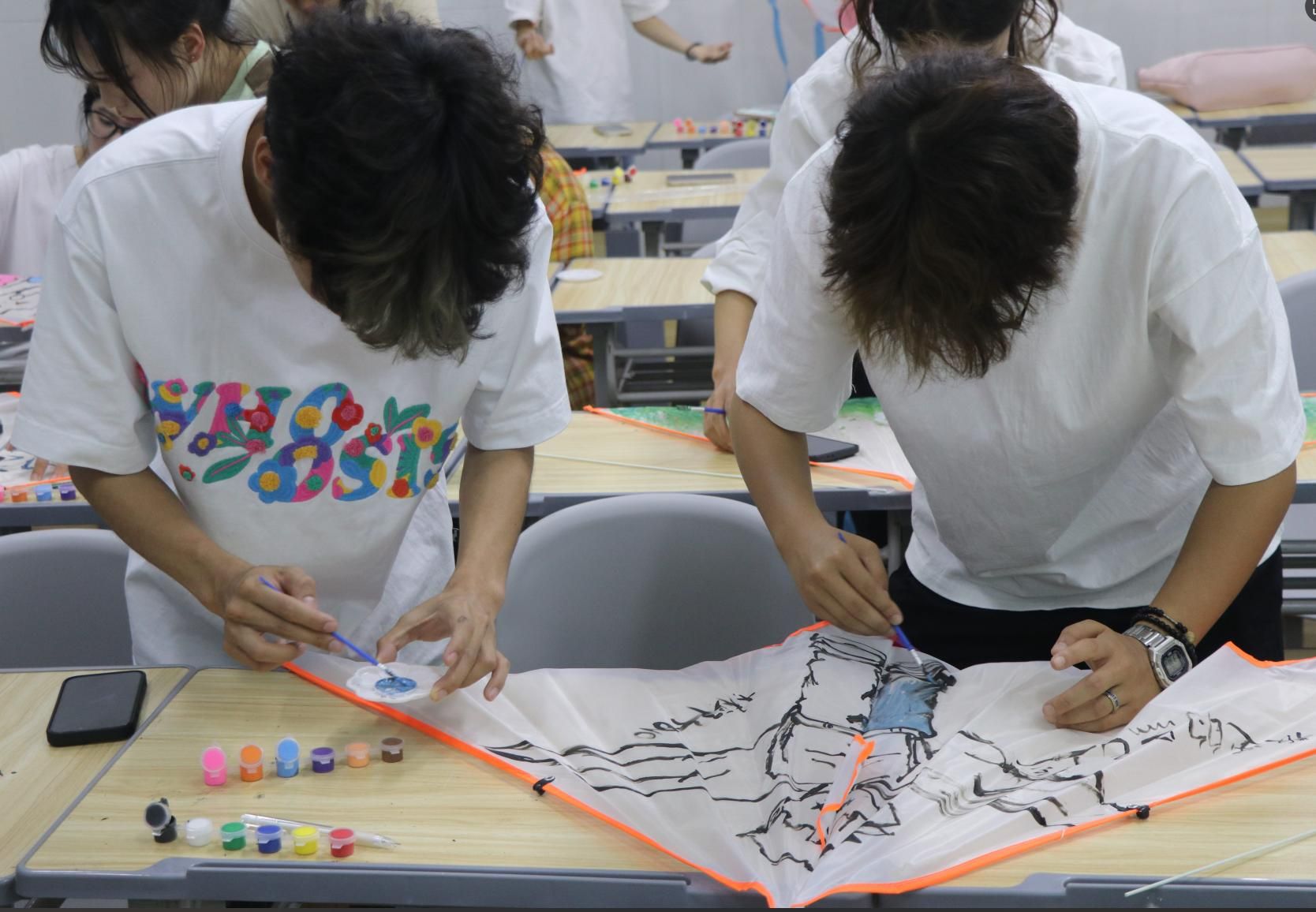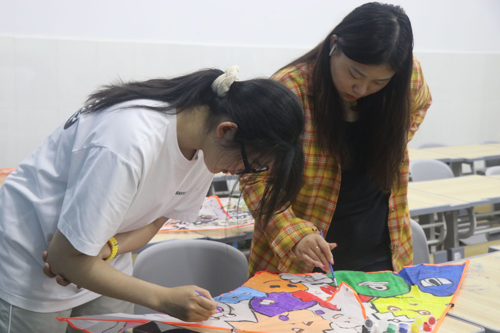 同学们兴致勃勃地发挥着自己的想象力和创造力,有的在风筝上写下了对未来发展的心愿和祝福,有的把抽象的现实困境具象化地描绘出来,有的将自己喜欢的卡通形象绘制在风筝上。一幅幅画卷,都是每个个体内心世界的小小缩影。大家一边绘画,一边敞开心扉交流,现场氛围欢乐、融洽。