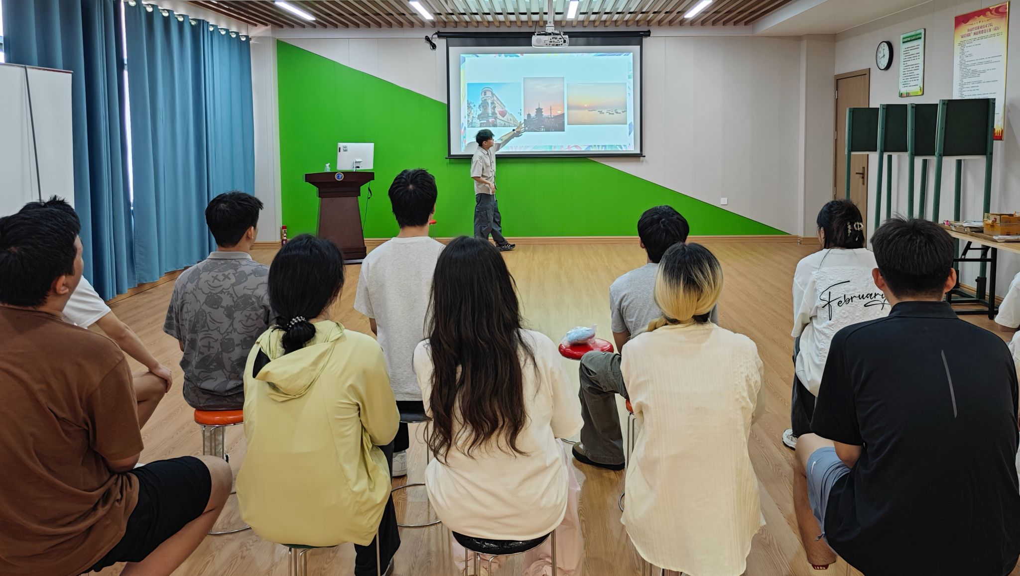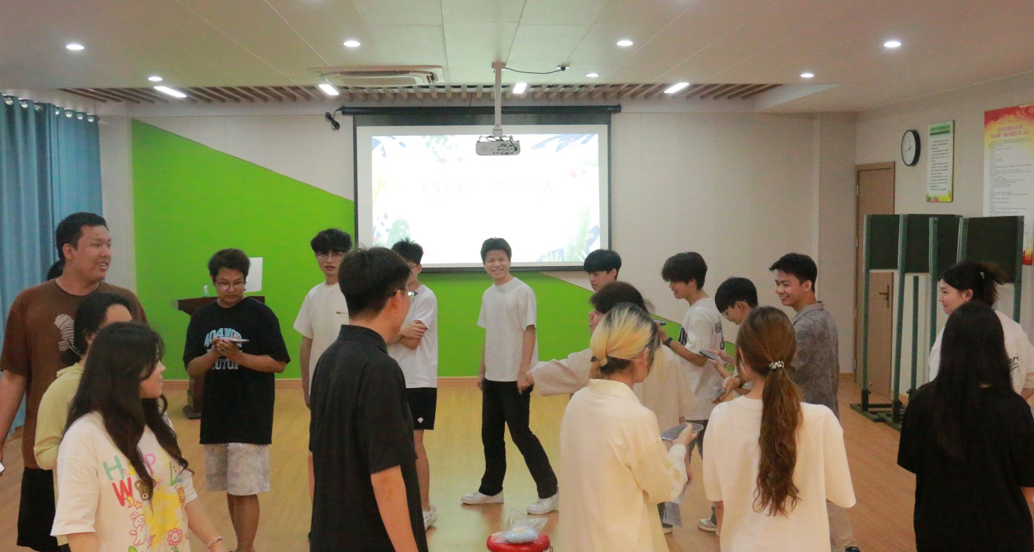 活动设计了听歌识曲、图识名城、团扇手绘三个趣味环节。在听歌识曲环节,同学们紧跟音乐节奏,踊跃抢答歌名,在欢快氛围里舒缓了紧张情绪。在图识名城环节,同学们仔细观察照片中的城市特色,准确识别城市,锻炼观察力。在团扇手绘环节,同学们将传统工艺与现代审美相融合,绘制出创意十足的团扇,在感受美、创造美的过程中,实现了心灵的滋养。