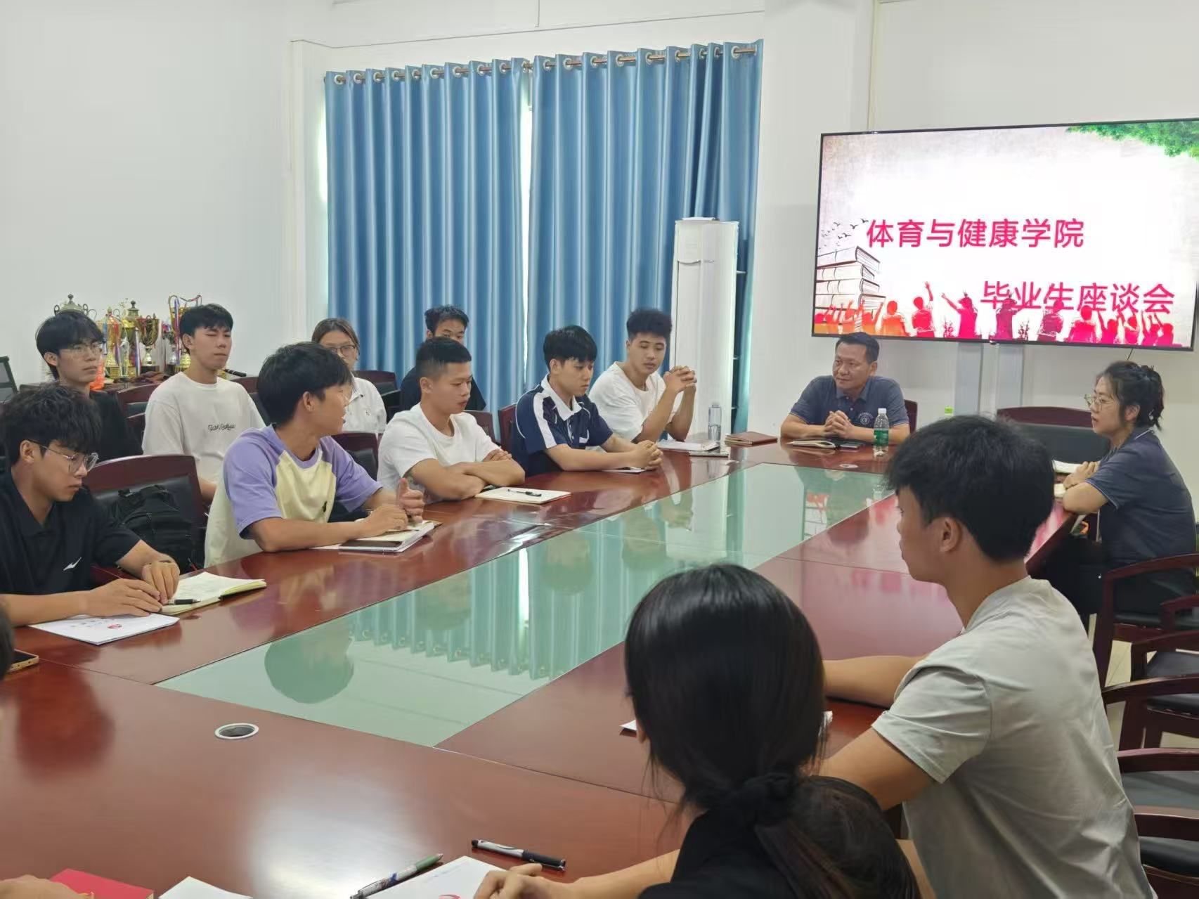 6月18日下午,体育与健康学院为2025届毕业生上“最后一堂党课”,并开展座谈交流。
