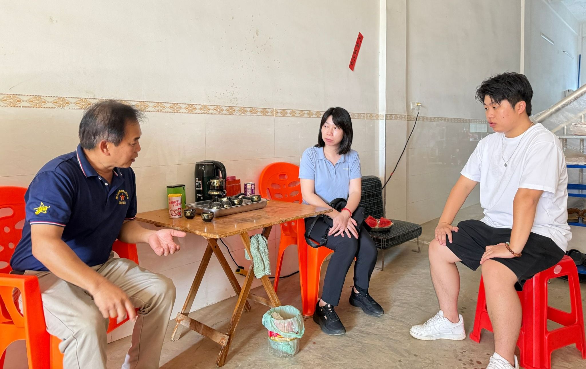 在学生家中,外国语学院老师们向潘翔及其父亲送上慰问品,详细询问了学生目前的生活状况、实习创业进展以及未来职业规划,认真倾听了他在生活、创业等方面遇到的困难与需求。