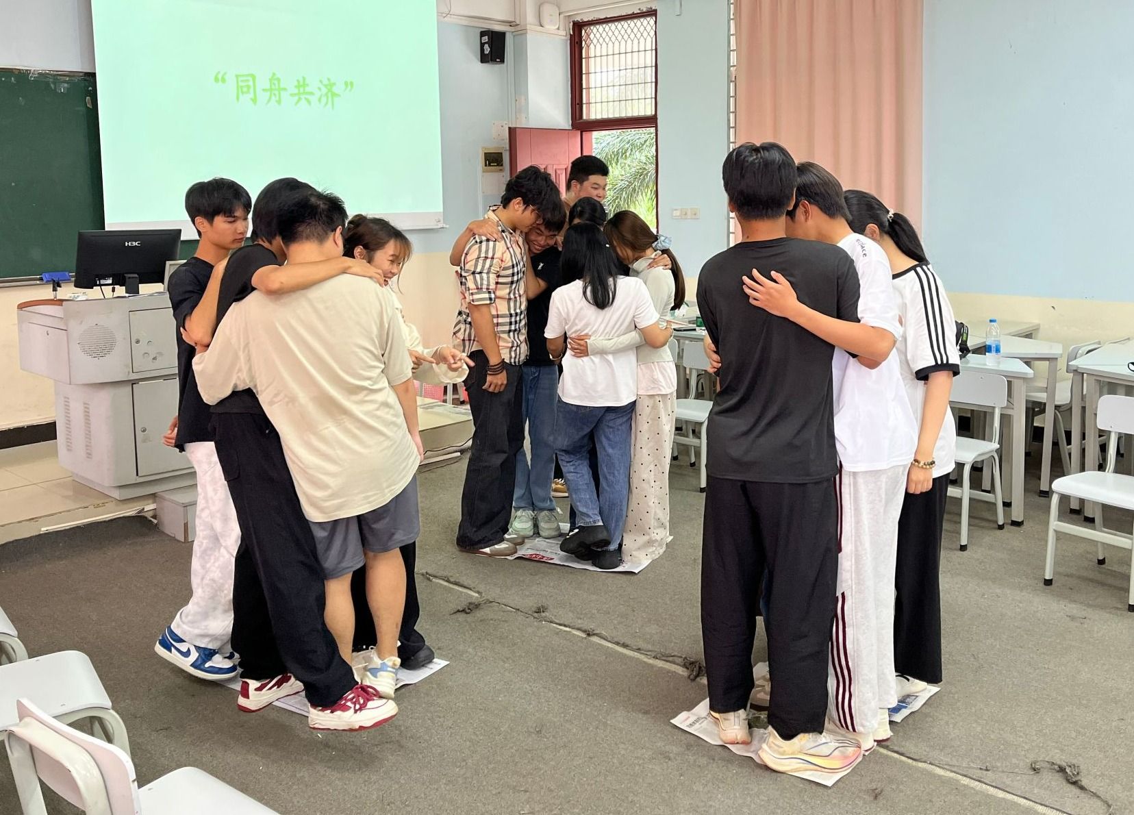 最能体现团队协作精神的“同舟共济”游戏将活动推向高潮。面对挑战,同学们积极出谋划策,相互扶持,不断调整策略与站位。在一次次的尝试与合作中,集体的智慧与力量被凝聚起来,让每一位参与者都真切感受到了团结协作的重要性。经过四个环节的互动,同学们从最初的腼腆拘谨,变得默契熟络,活动现场充满了欢声笑语。