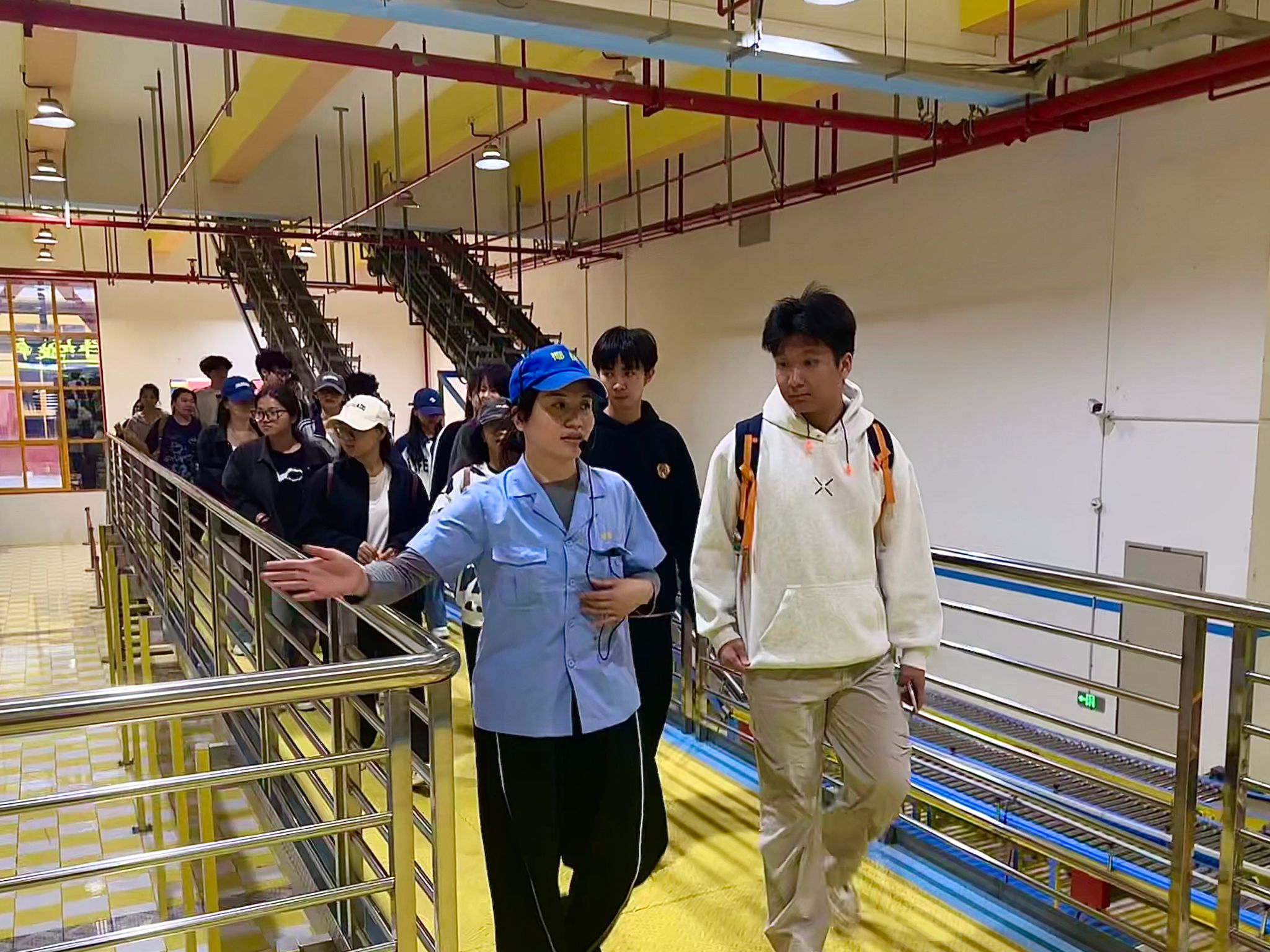 在椰树集团工作人员的引导下,师生们走进生产车间,实地观摩了各类产品的全自动生产线。现代化设备的高效运转、严谨的生产流程以及高标准的质量控制体系,让师生对企业的生产工艺与实力有了直观认识,也加深了对课本理论知识联系实际生产的理解。椰树集团相关负责人讲述了集团数十年的发展历程、改革变迁与企业文化,展现了一个民族品牌坚守品质、创新发展的奋斗历程。在场师生深受触动与启发。