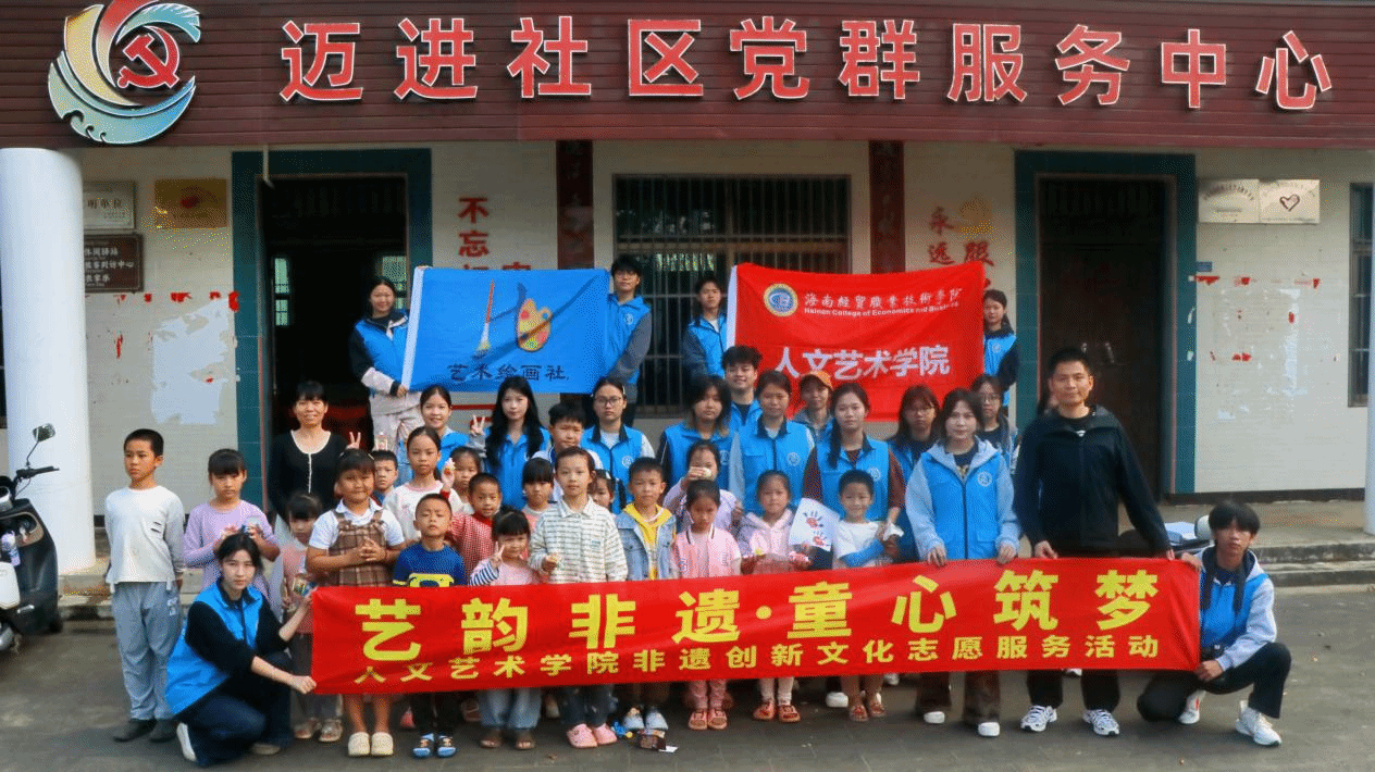 2025年12月7日,人文艺术学院学生志愿者来到海口市迈进社区,开展 “艺韵非遗・童心筑梦” 非遗文化志愿服务活动。