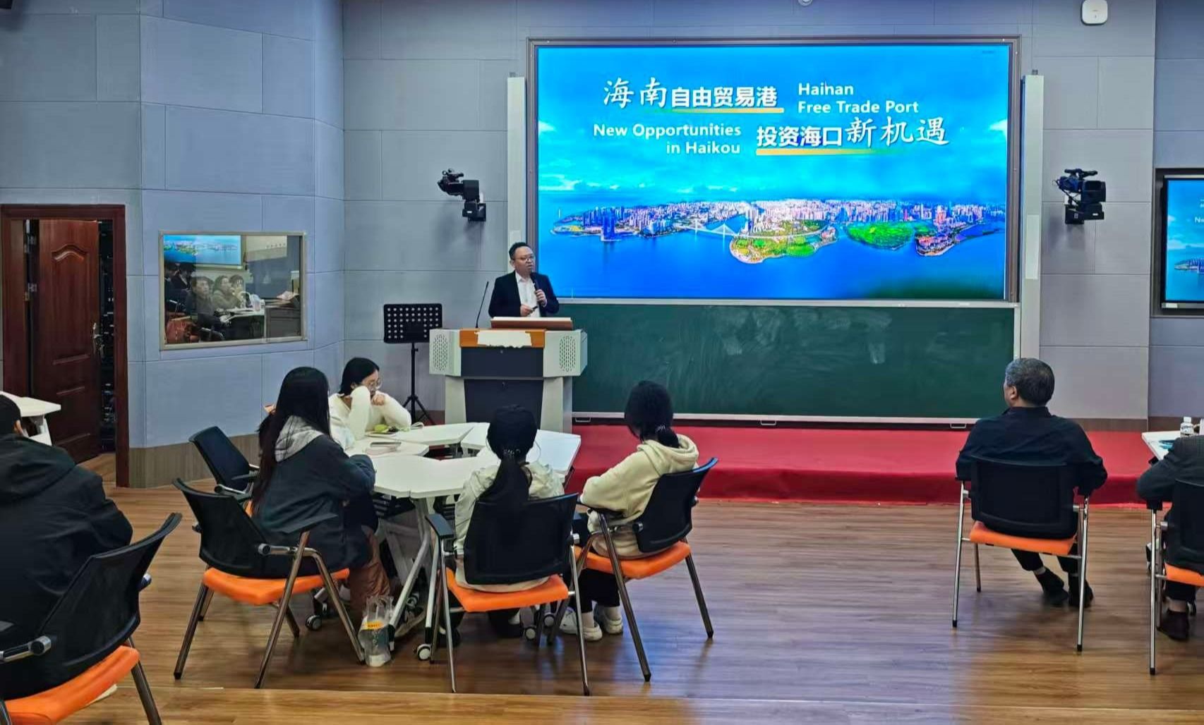 培训围绕海南自贸港建设,系统梳理了政策框架与发展路径。邢颖结合自身多年一线实践与政策研究经验,从“海南自贸港的使命与定位”切入,逐步深入阐释“封关运作”的关键节点与实施路径,详细介绍了以“4321”为架构的政策制度体系,并对比分析了海南自贸港在国内国际政策环境中的独特优势。培训进一步聚焦区域发展,解读了海口在自贸港建设中的投资机遇与重点产业布局,通过案例剖析、数据对比与趋势展望,将宏观政策转化为生动具体的实践指引,为师生勾勒出一幅清晰的发展图景。