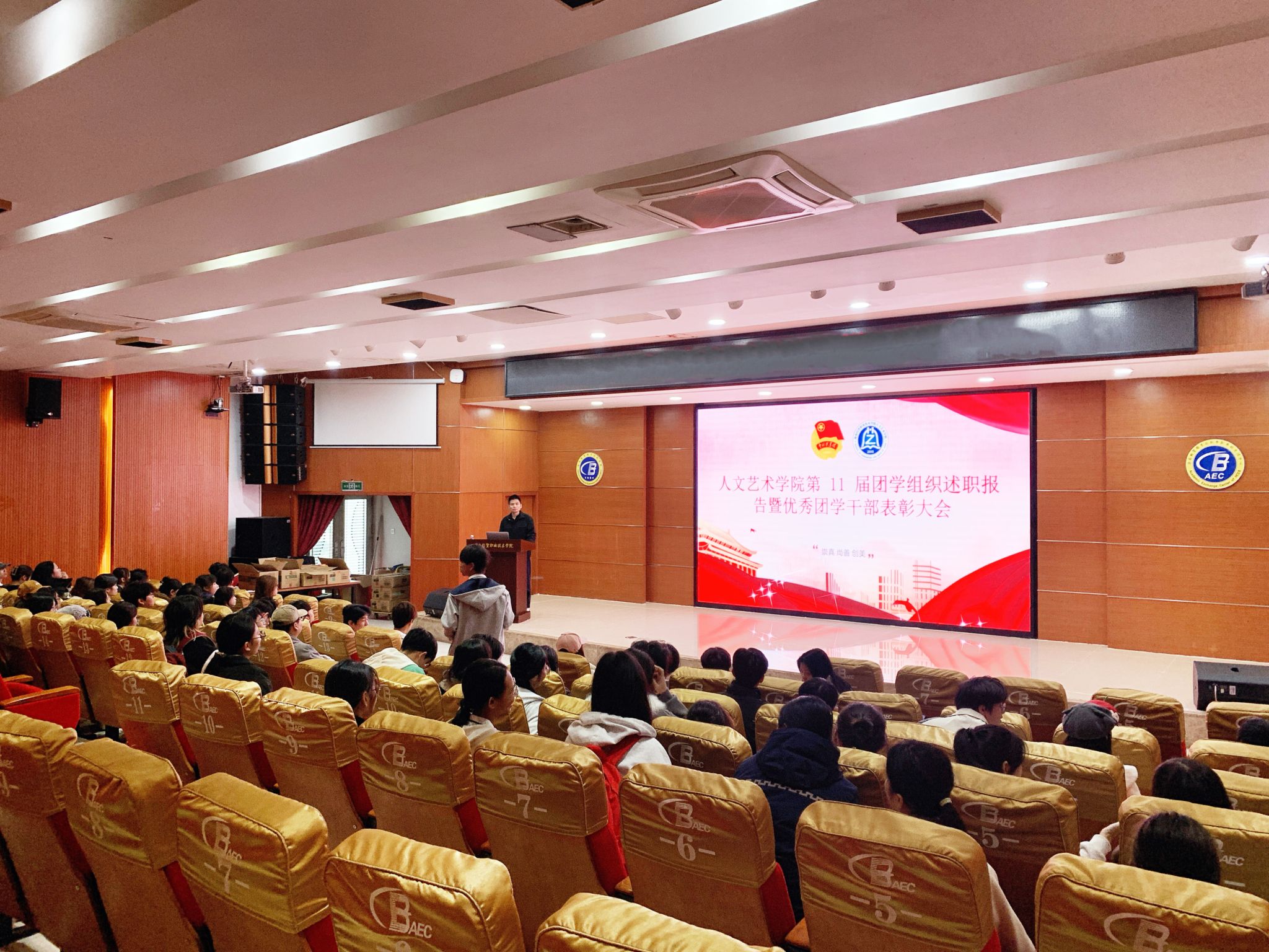 2026年1月9日,人文艺术学院团总支组织召开学院第十一届团学组织述职暨优秀团学干部表彰大会,嘉奖部门和个人在标榜创新、服务同学、社会实践等方面的优越表现,进一步凝聚团学力量、激发奋进活力,激励广大团学骨干以更昂扬的姿态砥砺前行、再创佳绩。